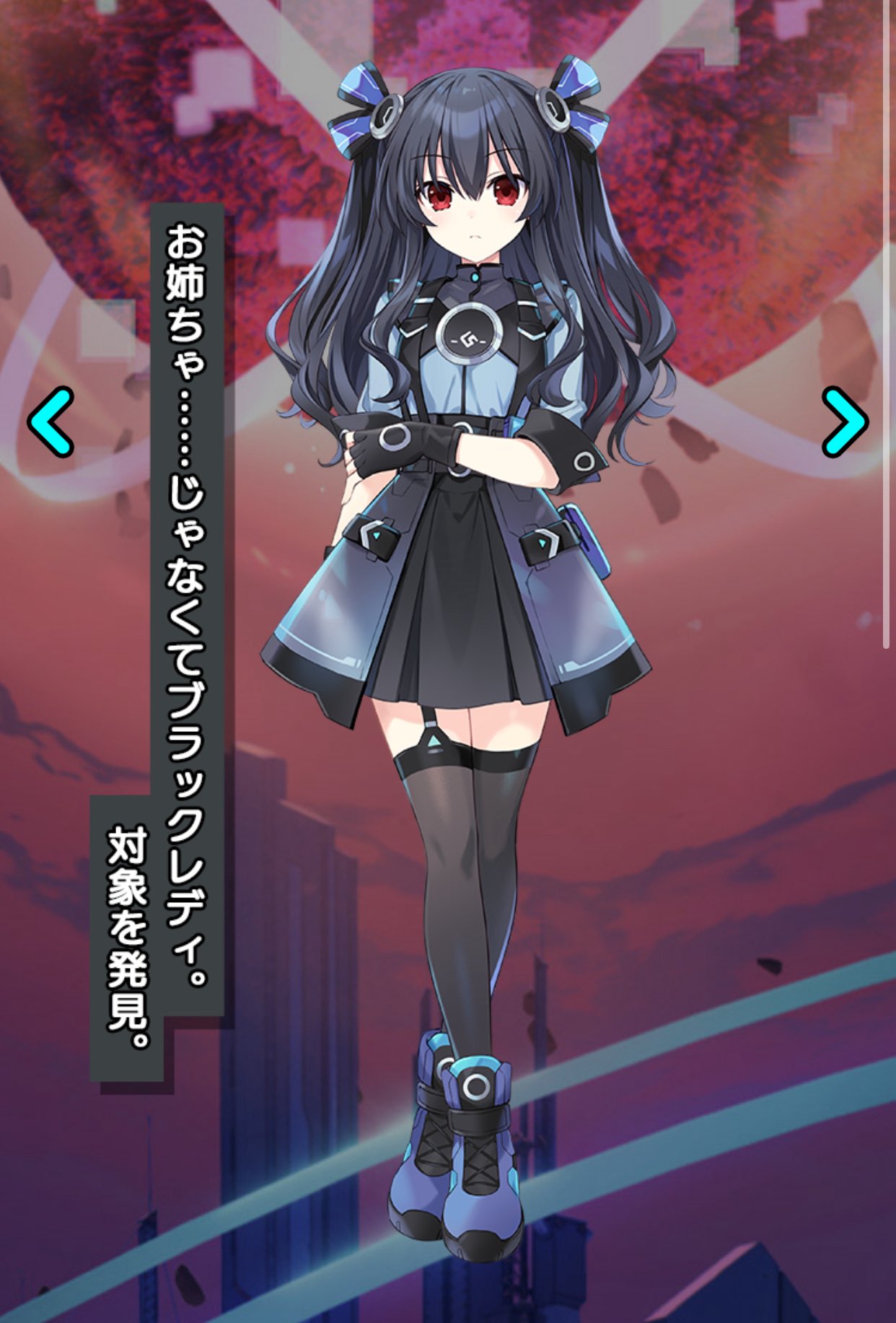I LOVE BLACK HEART. I LOVE THE WAY SHE TALKS. I LOVE HER JAPANESE VOICE AND HER ENGLISH VOICE. I LOVE THE WAY SHE SAYS SHE HAS TO BE THE ONE DOING EVERYTHING. I LOVE HER REAL NAME WHICH IS NOIRE WHICH IS APPROPRIATE BECAUSE I ALWAYS FEEL NO IRE WHEN I HEAR HER. I LOVE THE WAY HER CLEARLY SOFT AND SILKY WHITE HAIR FLOWS. I LOVE THAT SHE'S 160 CM WHICH IS IMAGINE TIER BECAUSE I AM WAY TALLER THAN HER. I LOVE THAT SHE USES SWORDS BECAUSE IT IS MY FAVORITE WEAPON TO USE IN ROLE PLAYING GAMES. I LOVE THAT SHE CARRIES THE TEAM WITH GOOD ALL ROUND STATS. I LOVE THAT SHE TRUSTS ME ENOUGH TO HELP HER IN HER GAME WHEN SHE LOST ALL HER FRIENDS. HER SWORD IS REALLY NICELY DESIGNED IN HOW SIMPLE IT IS AND IT COMPLIMENTS HER NICE ELEGANT FIGURE. SHE HAS PERFECTLY SIZED HIPS AND BREASTS FOR HER FRAME. AS SHE WEIGHS 45KG SHE IS PRETTY LIGHT WHICH WOULD MAKE CARRYING HER TO A COMFORTABLE PLACE EASY WHEN SHE GETS TIRED FROM WORK. NOIRE GETS ALONG WELL WITH NEPTUNE WHICH IS NICE. I LOVE THAT SHE IS FRIENDS WITH BLANC AND VERT. I LOVE THAT SHE LIES ABOUT BEING OVERWORKED BECAUSE SHE DOESN'T WANT THE OTHERS TO WORRY ABOUT HER BUT WE ALL KNOW WE HAVE TO DO IT ANYWAY. I LOVE THE EAGERNESS SHE HAS WHEN DRAGGING ME AROUND TO SPEND THE DAY WITH HER. I LOVE THAT EVEN THOUGH SHE SAYS MEAN THINGS SHE CARES ABOUT HER FRIENDS.
