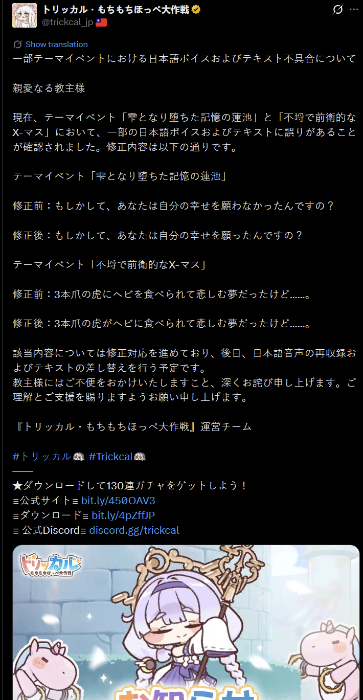 >>564598450trickcal having a shitty translation is sort of fitting