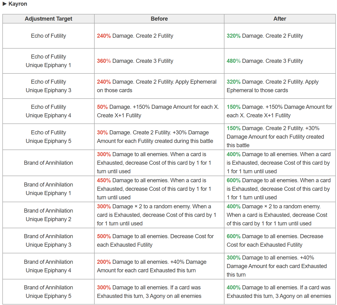 Most of the buffs went to Subdue instead of her attack cards