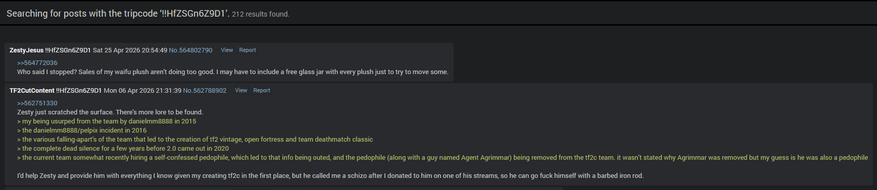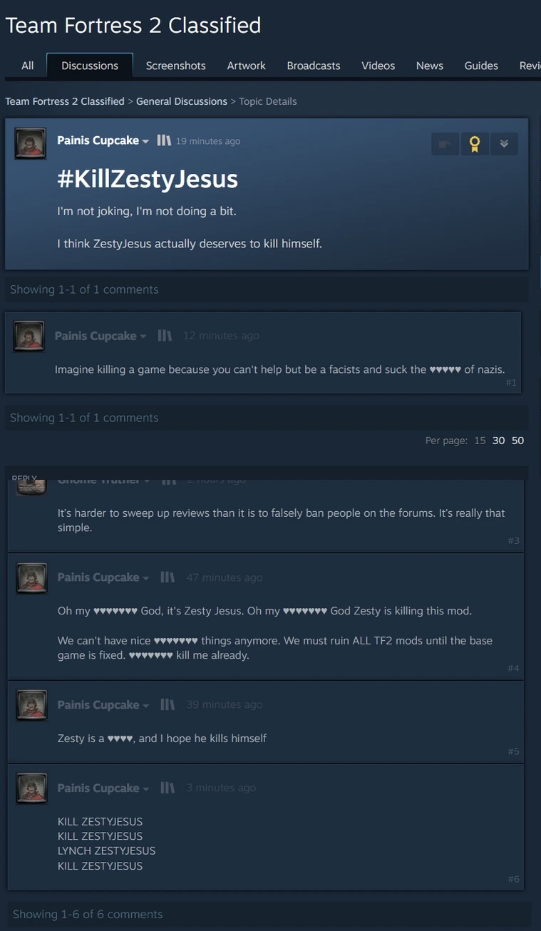 >>564629202Primarily created for and played on by 4chan. Any other definition is cope.Zesty's server is not a 4chan server, it's run by an e-celeb for his own purposes. You can't say nigger and they've actively banned tf2gs before.Castaway is a 4chan server because it was created by a 4chan anon (who posted it here) even if Gabber started promoting it. >>564629243It actually gets so many players they had to add the 100 player cap, it's only active on weekends bro
