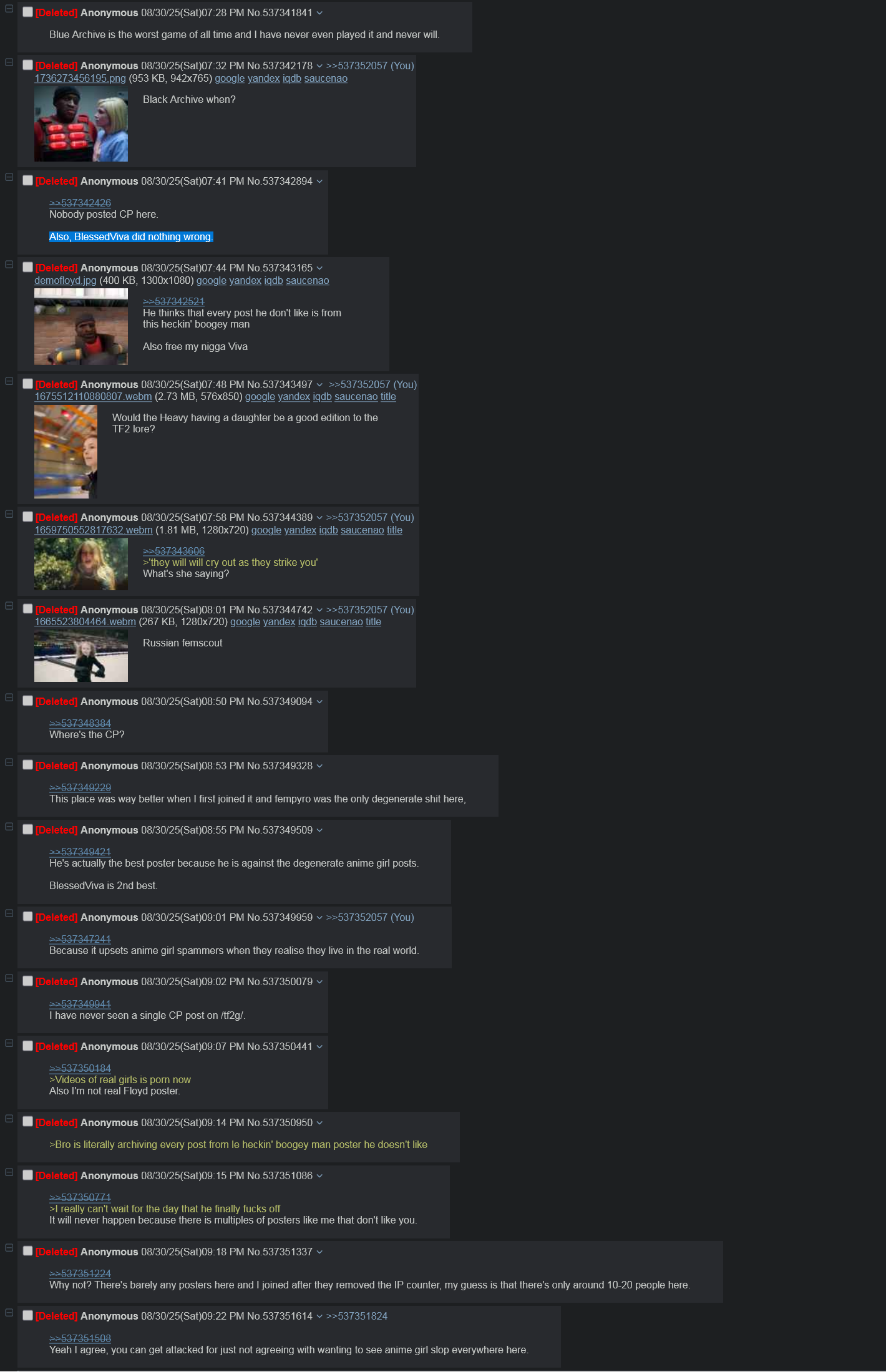 >>564856331that just sounds like regular vg general schizo behaviorpeople end up posting for the sake of posting, they become "regulars" for years despite having nothing to say or even despite quitting the gameim thinking more like general tf2 behavior, the game communities are almost all gone, casual is so depersonalized and dry, theres no "server regulars" and server culture doesnt develop because every match is an assortment of random players in a random valve server who may never meet again for all they know