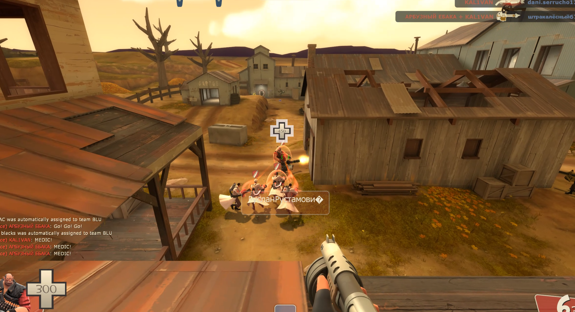 >4 medics pocketing a cheating heavy with a Cyrillic nameI swear they aren't actually human