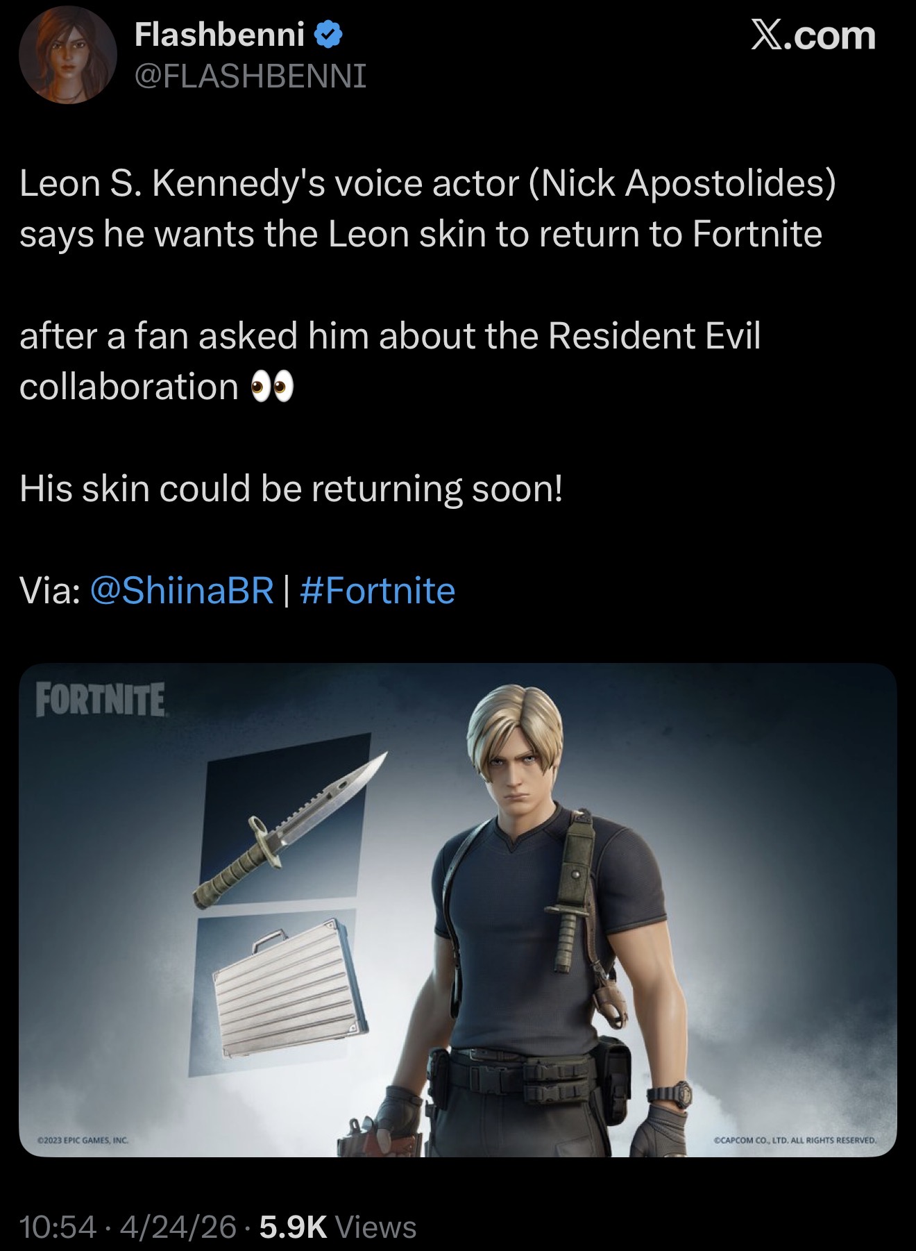 >>564629476Resi fans that beg for them to comeback under every post that Epic makes are absolutely retarded but whoever wasted their money (that they could spend on a fucking skin or literally anything else for god's sake) getting a cameo from Nick (who's also one Leon's worst VA that people only jerk off and obsess over because of remakes) takes the cake. They are retarded because they don't realize that collab's return also depends on a licence holder and it seems Capcom rather rely on Chun-Li/Sakura/Cammy to make money instead of returning RE if only those retards would do the same things they do to every post that Epic make on Capcom's own posts, anniversary ones are much better place to complain about it.
