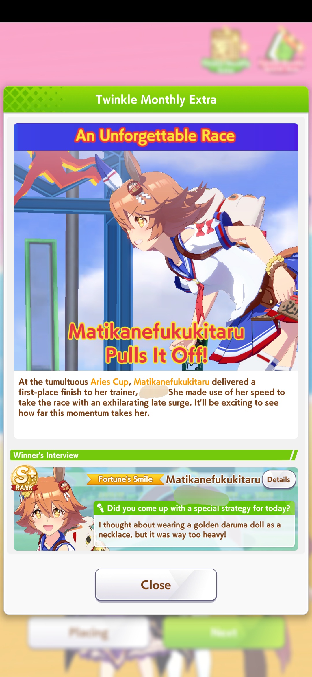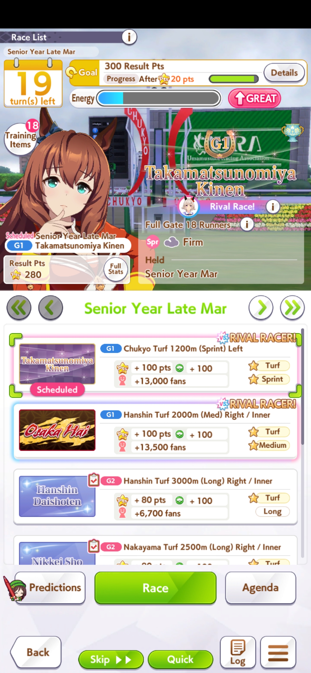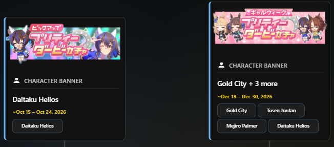 Previously: >>564612989>Global Game NewsLink your account to Cygames iDCurrent Scenario: Make A New Track aka "Trackblazer"Current Rate Up: Yaeno Muteki (3*), SSR Twin Turbo (Speed), SSR Ines Fujin (Guts)Current CM: Aries Cup - Nakayama Turf 2000m Medium/Right/Spring/FirmCurrent Event: Racing Carnival>Schedule04/26 - Golshi Week Celebration04/26 - Cheerleader Nice Nature (3*), Cheerleader King Halo (3*), Bamboo Memory (SSR), Seeking the Pearl (SSR)04/26 - Tracen Cheer Squad Story Event04/30 - Ines Fujin (3*), MR. C.B. (SSR), Tokai Teio (SR)https://pages.snep.pw/uma/anni-skill-changes>JP Game NewsCurrent Rate Up: Admire Groove (3*), (SSR) Tokai Teio, Almond Eye, Eishin Flash, Dream Journey, Calstone Light O, Curren Bouquetd'or, Mihono Bourbon, Tamamo Cross, Stay Gold, Daiichi RubyNew Scenario "Beyond Dreams" releasedTimeline: https://uma.moe/timelineCygames Webstore: https://webstore.cygames.com/en/umamusume_en>Thread Clubshttps://rentry.co/umaglobalclublistYou must be E3 (20k points) to join a circle. Apply with /uma/ or /vg/ in your profile or post ID in the thread.>All Guides & Resourceshttps://rentry.org/uma26Game databasehttps://gametora.com/umamusume (Click the gear to switch between JP / global server info)A basic guide for newfagshttps://rentry.org/umaglobalFind networks if your region is blocked from the game or clienthttps://www.umavpn.topSeiyuu & Concertshttps://rentry.org/umstUmamusume Birthday Calendarhttps://ウマ娘.攻略.tools/events/birthdayUma Texthttps://umareader.idsmile.xyzCustom Stickershttps://schizo.farm/resources/stickers