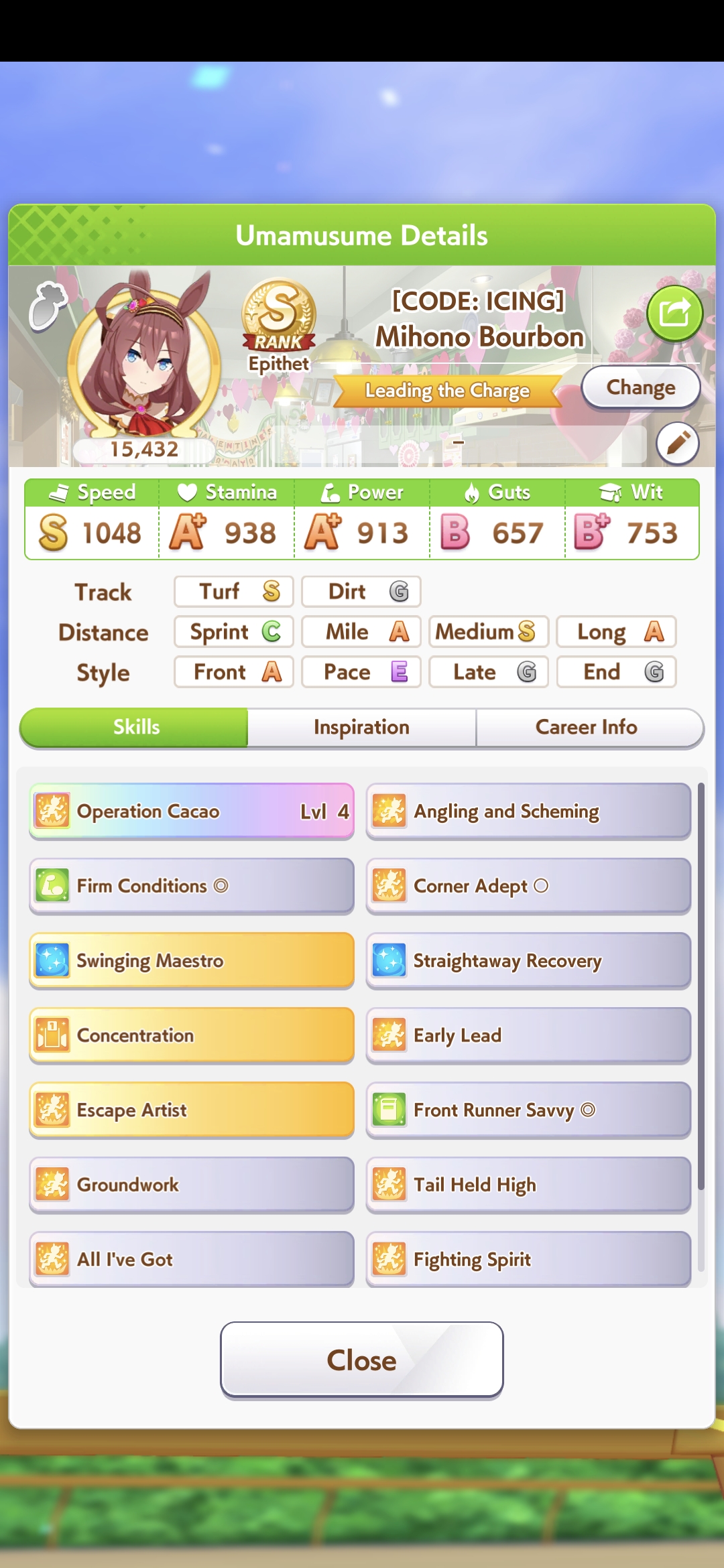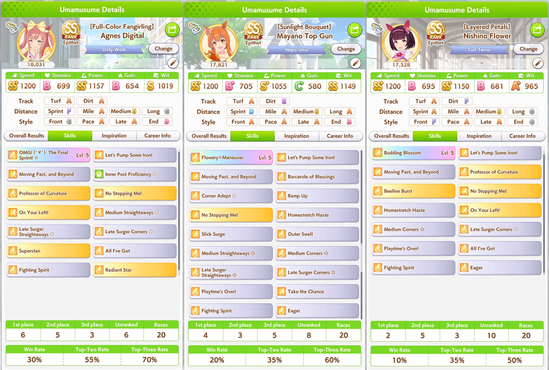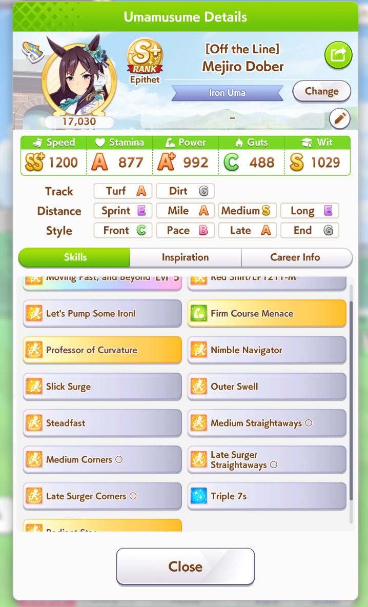 >>564659536the Grass is actually a crackpot triple gold accel ace i made earlier today, she's managed to win twice so far>>564659853this kita has won 4 so far, she and falco (6 wins) are doing better than i expected considering no gw on either of themcropped out skills are THH and radiant
