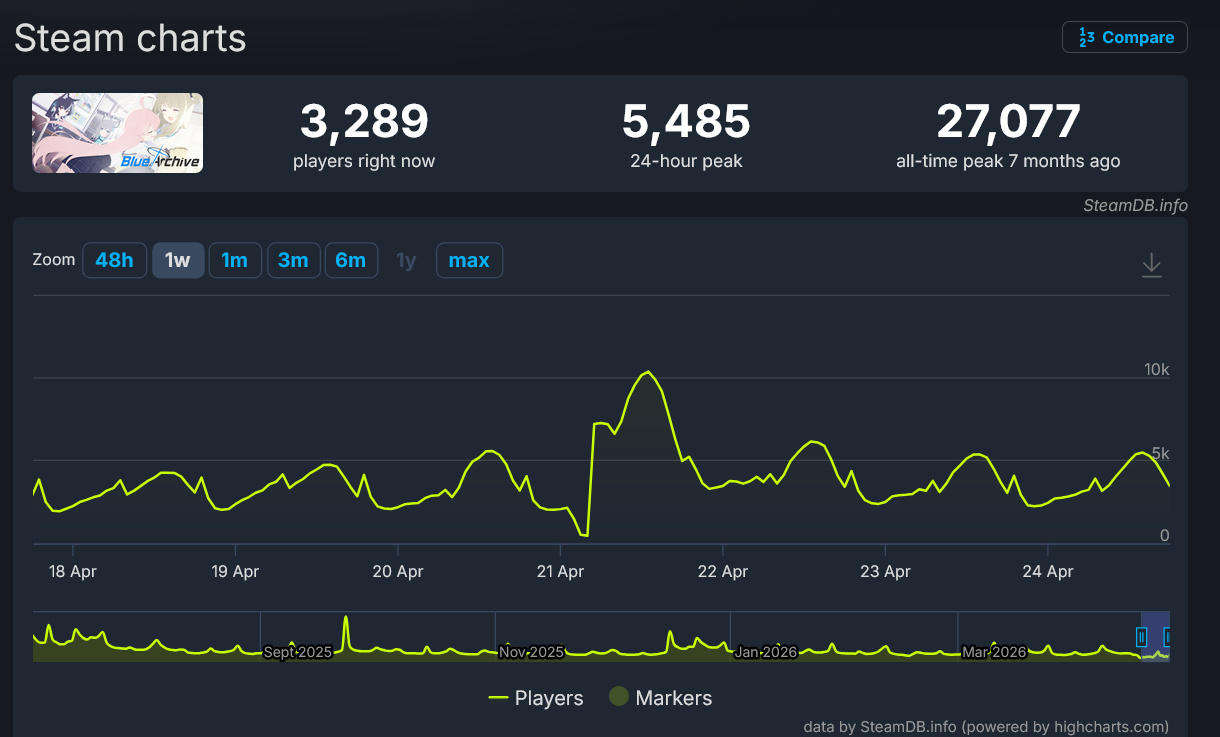 >>564639436Some like limbus, BA and Umamusume only are on steam for PC officially(though popular on bluestacks too). Others like Wuwa and HI3 have their own client and then the option to use steam.It's obviously not really easy to gauge gacha game engagement on steam because it's measured by active concurrent players and when gacha dailies take 5-10 minutes those numbers are naturally way lower than what the active playerbase actually is.