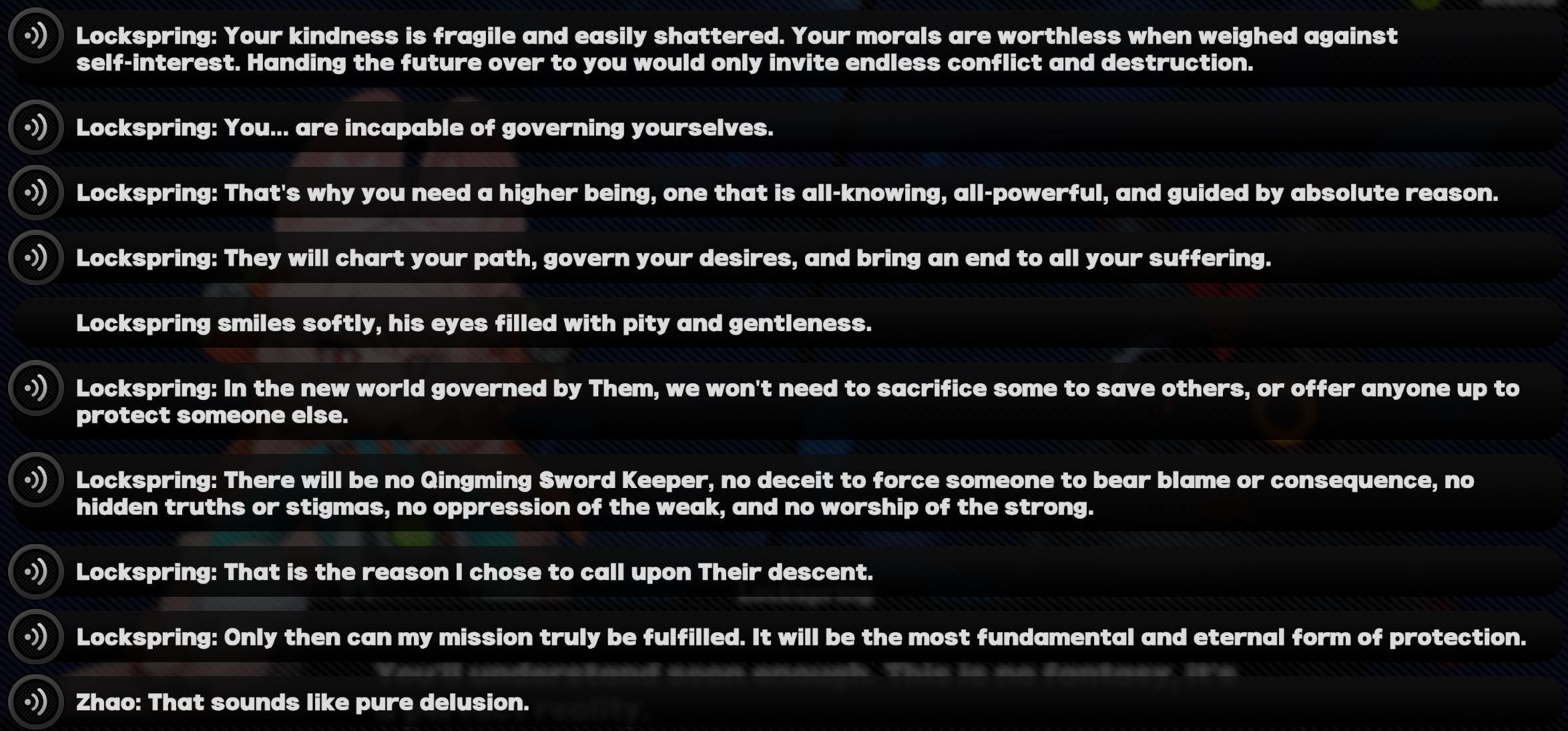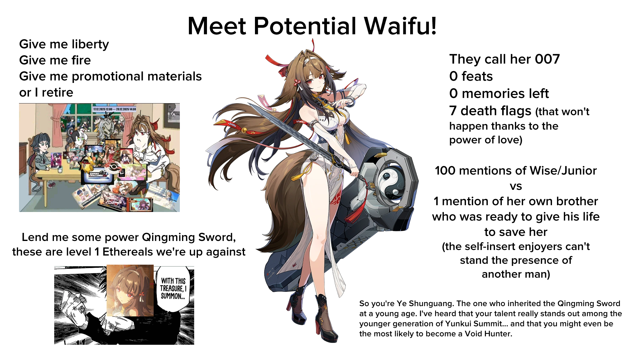>>564655051It's weird because I certainly don't recall Genshin shitting on other characters to prop up their archons. Hell, Venti got kicked in the balls and mugged in the initial chapter, Zhongli's whole arc was about giving up power, and Nahida was basically a powerless baby who relied on the player for everything.Meanwhile, Yixuan tells Obol Squad to their face that their entire platoon is worthless compared to her.