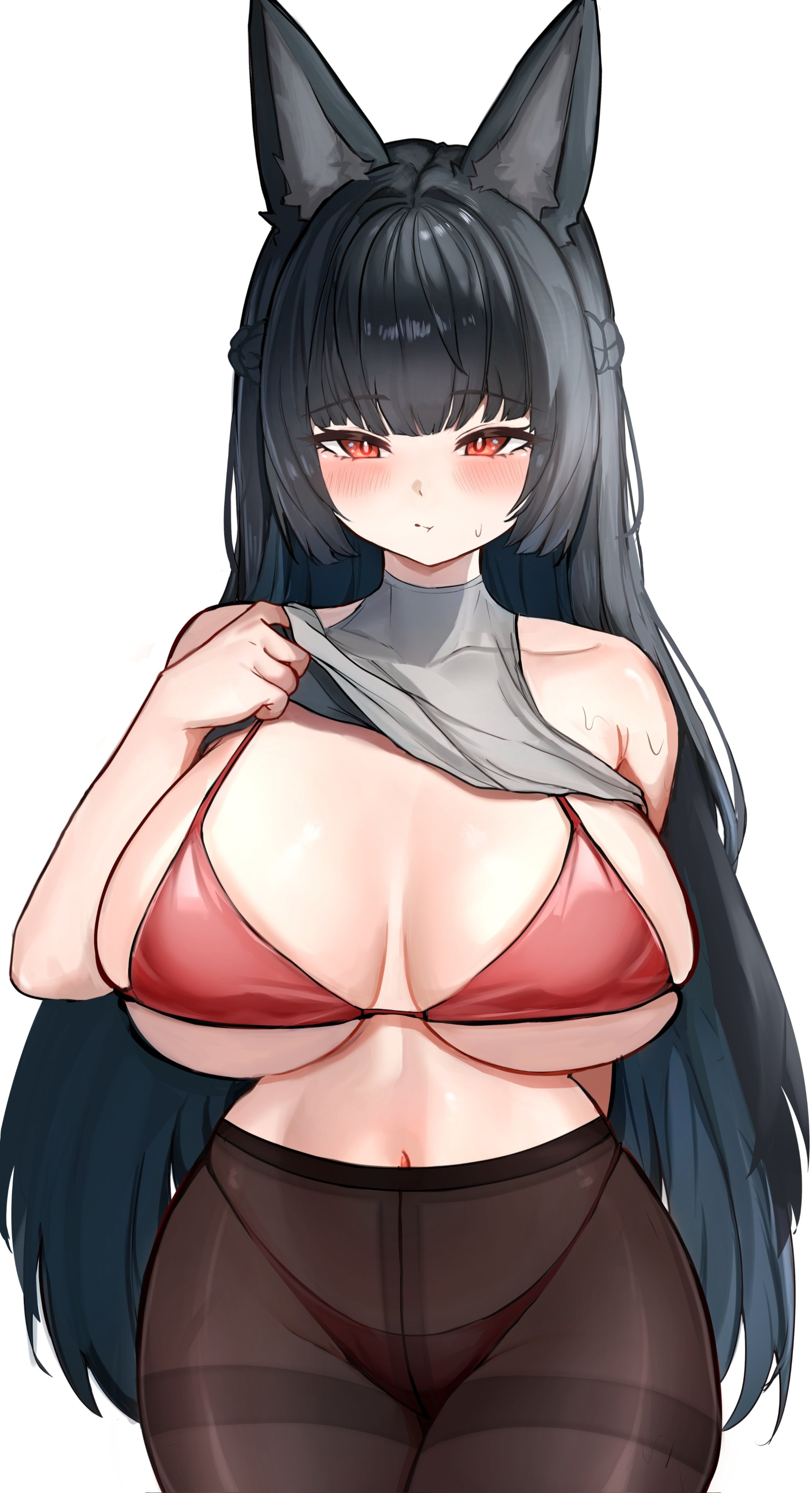 Why do people want Miyabi to dress like a slut?Her appeal is being a trad wife I like her outfit it's Wakamo with a long skirt , all I would add is a pony tail.