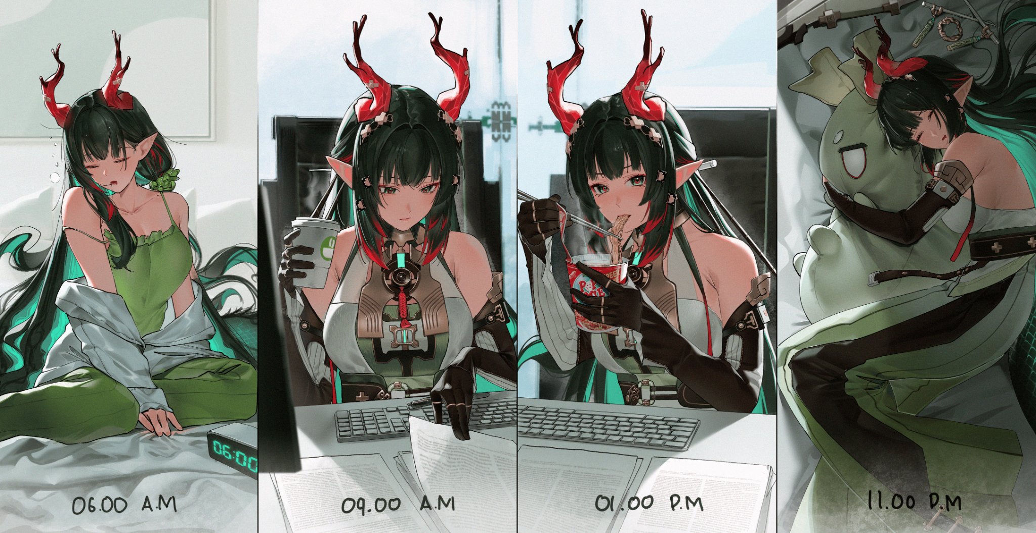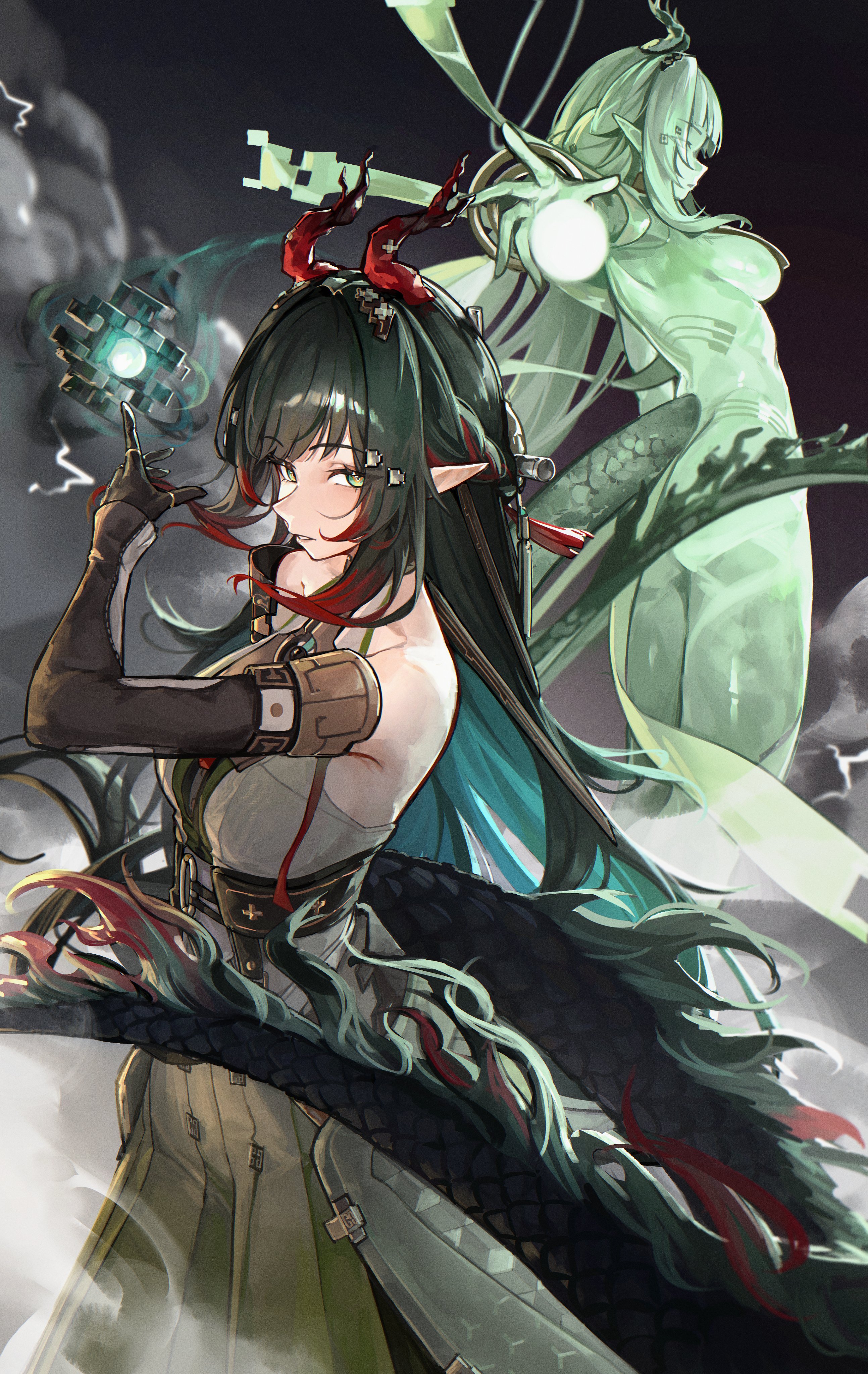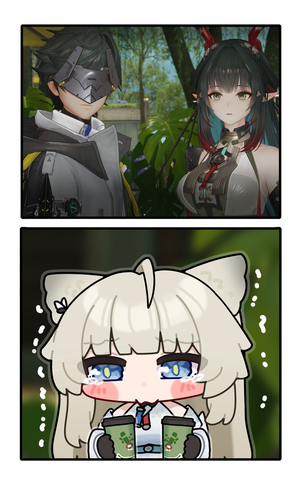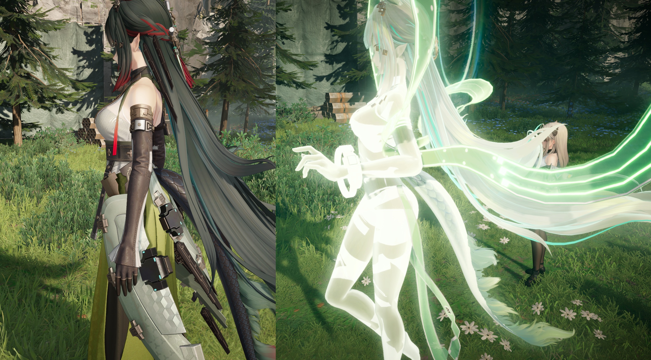 >>564700918Pre-edit of the left. Just thought it was funny Perlica coincidentally happened to be staring again while I was ogling the Leek setting up for the camera shot