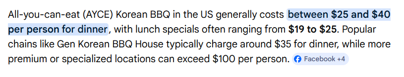 >>564672249Wait until you realize there are some places in US where you can get cheap korean bbq buffet as low as $25