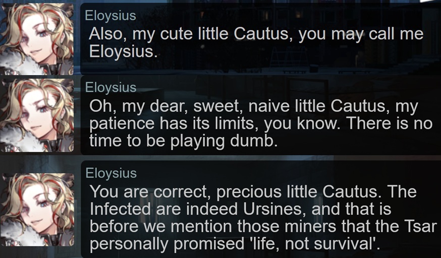 >>564700520Well we don't really have a lot of engaging mutual strugglers with significant on-screen relationships otherwise. Theresa and Theresis hide off till they die to Originium, Talulah runs off, and Priestess's goal is so aimless we don't really have a challenge to continue.