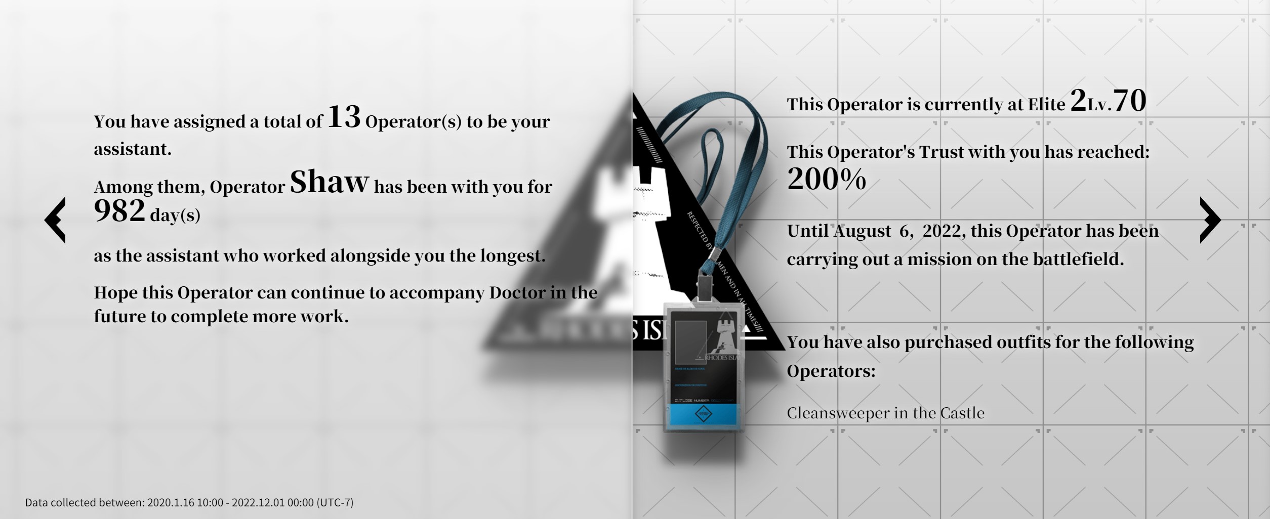 Previous thread: >>564620340[4/25]CN stream (19:30 GMT+8): https://live.bilibili.com/5555734>CURRENT, FUTURE GLOBAL/JP/KR CONTENT:[4/10-4/24][Standard]6* Caster Lin, 6* Specialist Lee (Shop), 5* Vanguard Blacknight, 5* Supporter Alanna, 5* Guard Wind Chimes (Shop)[4/1-4/22]Icebreaker Games #2 - Chiave skin[4/14-5/5]Retracing Our Steps - 6* Supporter Astgenne the Lightchaser, 5* Guard Hadiya, 4* Caster Akkord[4/14-4/28][A Shared Oath of Guardianship]6* Vanguard SilverAsh the Reignfrost, 6* Caster Pramanix the Prerita, 5* Sniper Snow Hunter[4/14-4/28][Log-in]Estelle skin[4/14-5/12][EPOQUE & Test]Vina Victoria, Civilight Eterna, Ho'olheyak; Lappland the Decadenza[4/14-5/12]Mass skin reselling>CURRENT, FUTURE CN CONTENT:[4/9-4/23][Standard]6* Defender Penance, 6* Guard Mlynar (Shop), 5* Caster Tecno, 5* Supporter Sand Reckoner, 5* Vanguard Fang the Fire-Sharpened (Shop)[4/7-4/21]People, A People - 5* Supporter Botani[4/7-4/21][Rage of the Many]6* Zima the Raging Tide, 5* Medic Ukusik, 5* Vanguard Mitm[4/7-4/21][Ambiance Synesthesia]Nymph, Surtr[TBA][Ambiance Synesthesia]Lemuen, Necrass, Saria>/akg/ website:akgcc.github.io>AK EN Database:puppiizsunniiz.github.io/AN-EN-Tags/akhrchars.html>More valuable resources:rentry.org/akg_resources>/akg/ merch guiderentry.co/akg_merch>Pull calculatorhttps://imivi.github.io/arknights-pulls-calculator/
