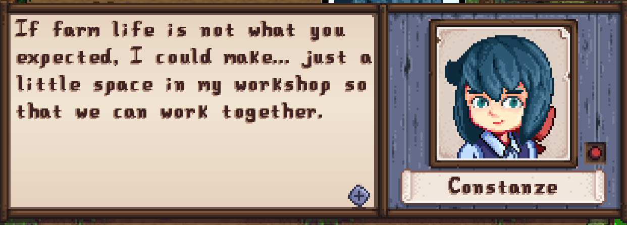Winter Jas Edition>Official NewsSandy is confirmed as a new romance option for 1.7. Oh, and Clint is there too, I guess.Version 1.6.16 is confirmed to be releasing before 1.7 and it's coming... Someday. Haunted Chocolatier is also a game that will be released.1.6.16 modder's pre-alpha is now available.Check some of the expected changes (mods-wise):https://stardewvalleywiki.com/Modding:Migrate_to_Stardew_Valley_1.6.16