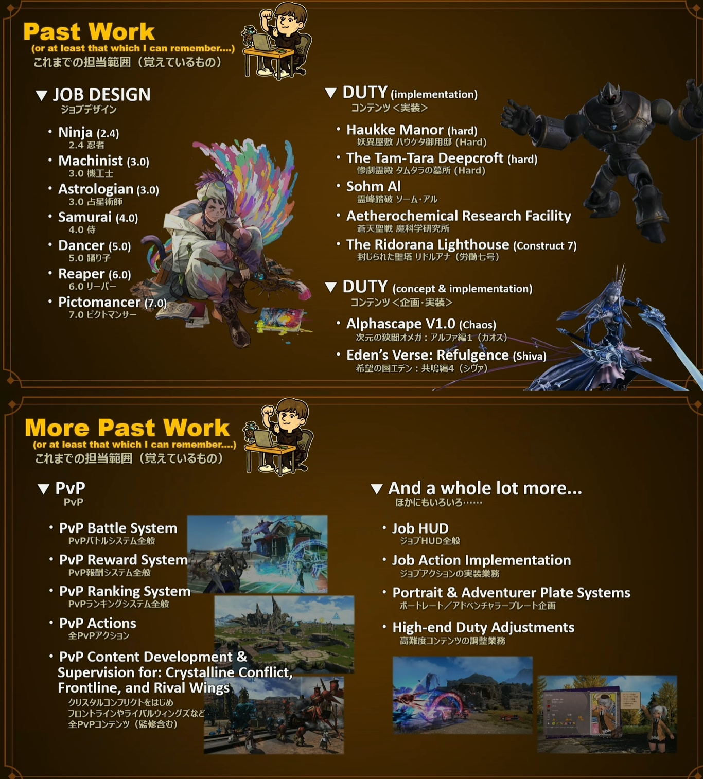 >>564683970tl;dr is they added a new mode to play jobs called Evolved mode, it consolidates buttons together (1-2-3 becomes 1-1-1, or Provoke has 2 charges, and if you cast it on the enemy it acts like Provoke, but if you cast it on an ally it acts as a Shirk) plus unique originality on each job.For Paladin Sheltron is a counter which if used early just gives you a small hit and if used right before a hit it gives you a BIG hit.Dragoon has Directionals now, getting resources from hitting the enemy from their left, their right, and behind, and getting the PVP LB jump that gives them 90% damage reduction when used.Bard gets whacky omnidirectional jumps and the buffs are situation based instead of rotation based (I think one was more healing, movespeed and more damage?)White Mage seemed simple enough but you get a damage GCD if you use GCD heals.