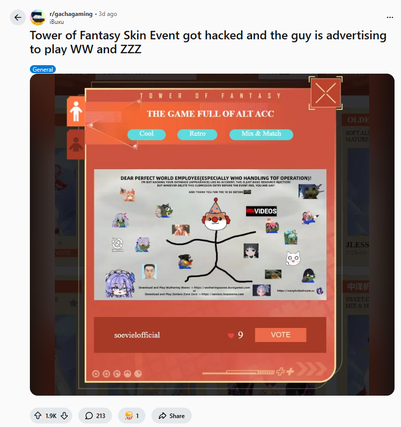 More like I don't play ZZZ and have no reason to engage with posts about it in HSR general
