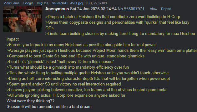 >>564685738be glad that you weren'tit was the worst season in Limbus' history, and unless KJH just starts fucking livestreaming him killing babies in some future season, it will remain the worst season