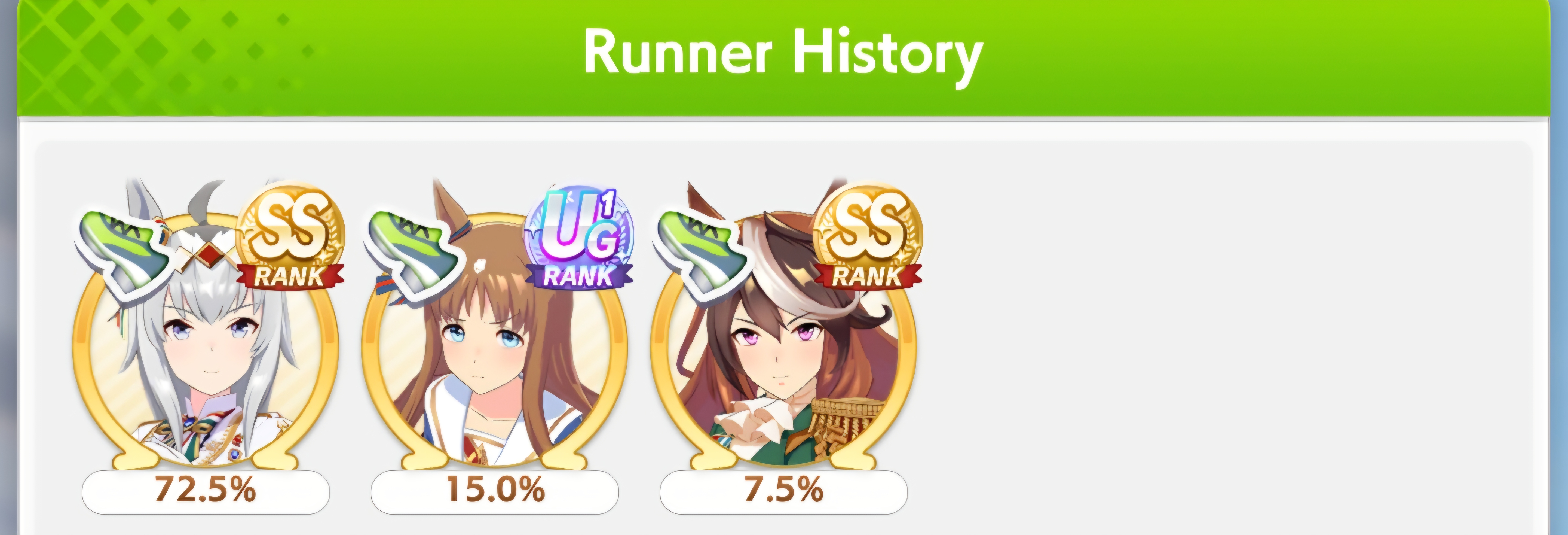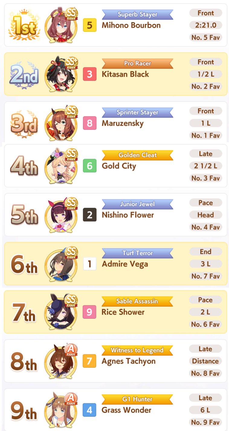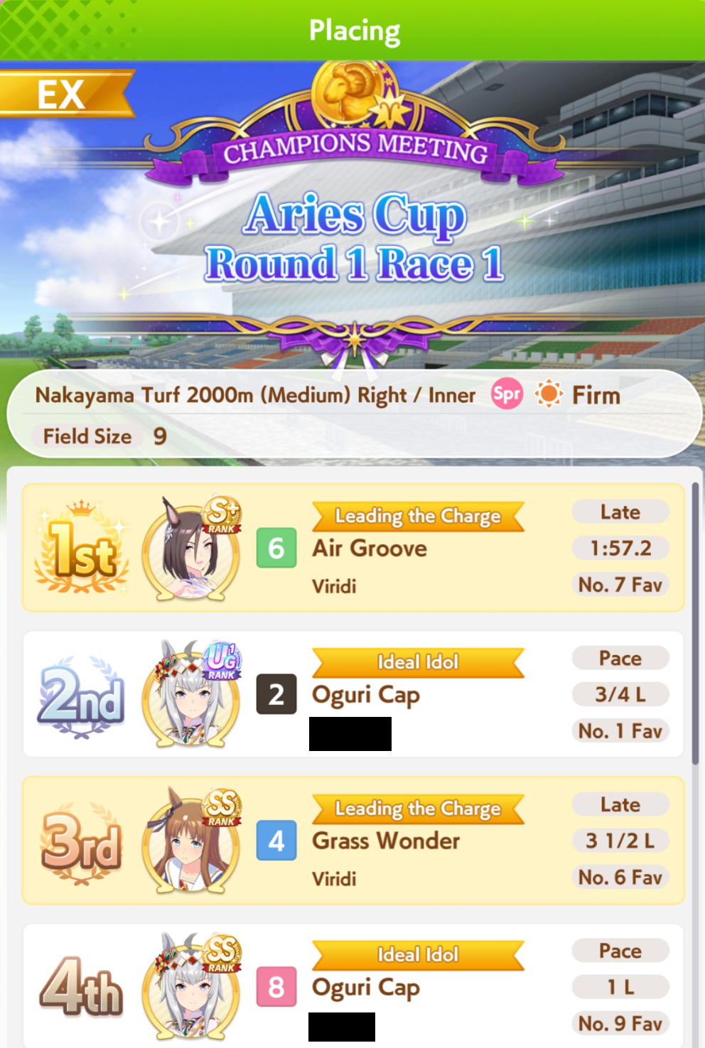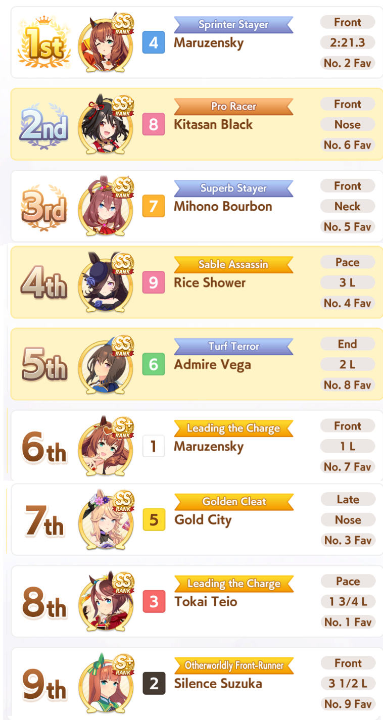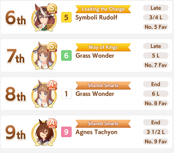 this was aidsyes you get more sp overall by placing top 3but also a LOT less shop coinshonestly better to just hard-focus on mediums atpI think all gps being mile and long focused would be good, then main parents 3* medium. that way your odds are still pretty good for medium s