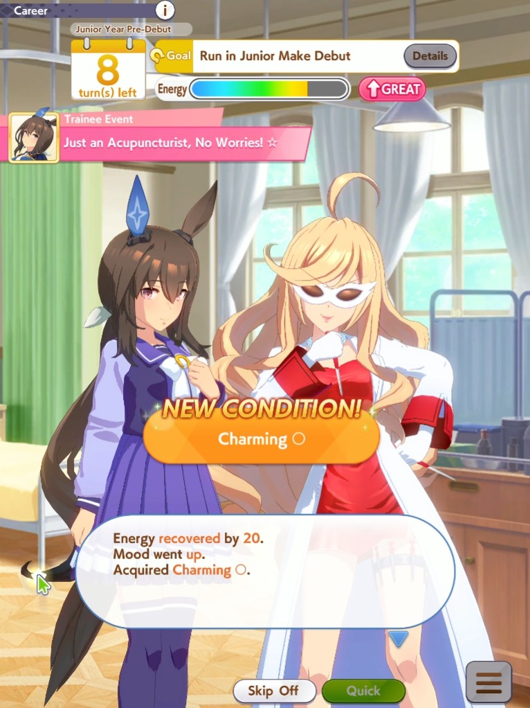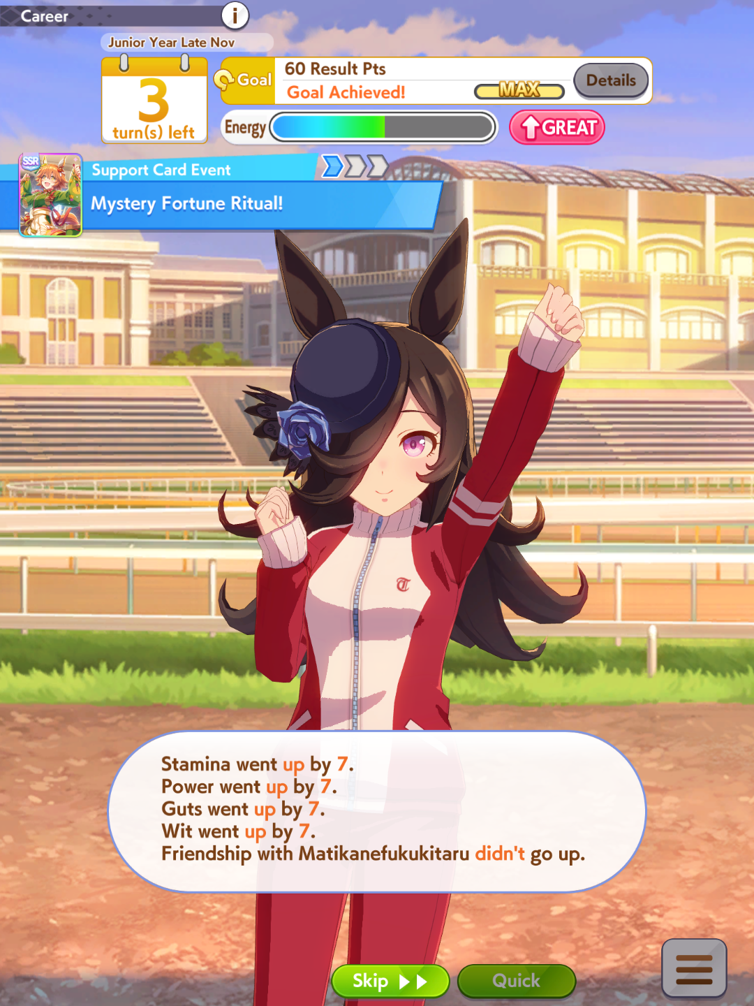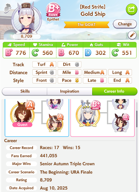 >>564682406>g1 only>do triple tiara if you don't have 350+ stam by inspiration>forget about nhk mile if you have less than 400 speed>same if you have B in any aptitude you're racing in