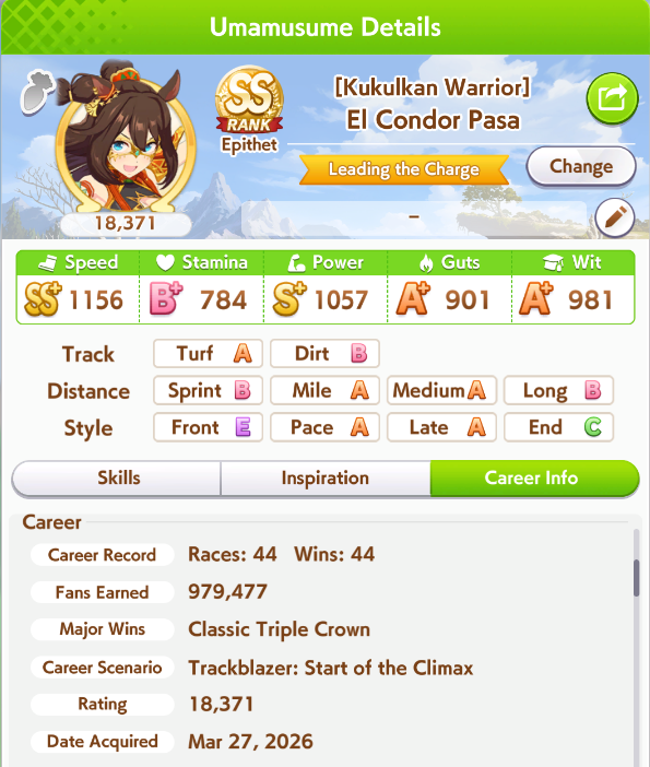 Previous: >>564662365>Global Game NewsLink your account to Cygames iDCurrent Scenario: Make A New Track aka "Trackblazer"Current Rate Up: Yaeno Muteki (3*), SSR Twin Turbo (Speed), SSR Ines Fujin (Guts)Current CM: Aries Cup - Nakayama Turf 2000m Medium/Right/Spring/FirmCurrent Event: Racing Carnival>Schedule04/26 - Golshi Week Celebration04/26 - Cheerleader Nice Nature (3*), Cheerleader King Halo (3*), Bamboo Memory (SSR), Seeking the Pearl (SSR)04/26 - Tracen Cheer Squad Story Event04/30 - Ines Fujin (3*), MR. C.B. (SSR), Tokai Teio (SR)https://pages.snep.pw/uma/anni-skill-changes>JP Game NewsCurrent Rate Up: Admire Groove (3*), (SSR) Tokai Teio, Almond Eye, Eishin Flash, Dream Journey, Calstone Light O, Curren Bouquetd'or, Mihono Bourbon, Tamamo Cross, Stay Gold, Daiichi RubyNew Scenario "Beyond Dreams" releasedTimeline: https://uma.moe/timelineCygames Webstore: https://webstore.cygames.com/en/umamusume_en>Thread Clubshttps://rentry.co/umaglobalclublistYou must be E3 (20k points) to join a circle. Apply with /uma/ or /vg/ in your profile or post ID in the thread.>All Guides & Resourceshttps://rentry.org/uma26Game databasehttps://gametora.com/umamusume (Click the gear to switch between JP / global server info)A basic guide for newfagshttps://rentry.org/umaglobalFind networks if your region is blocked from the game or clienthttps://www.umavpn.topSeiyuu & Concertshttps://rentry.org/umstUmamusume Birthday Calendarhttps://ウマ娘.攻略.tools/events/birthdayUma Texthttps://umareader.idsmile.xyzCustom Stickershttps://schizo.farm/resources/stickers
