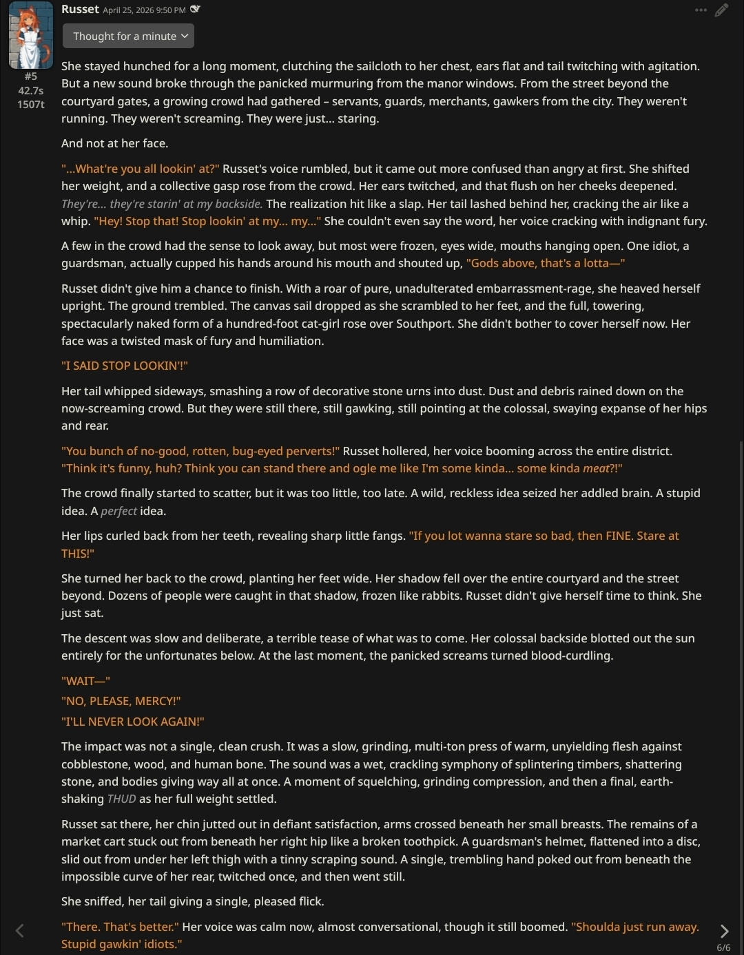 >>564812225>anons spend months memeing about how v4 will save the hobby>chinese bots scrape this info and send it back to their overloards>they actually finetune a 1.6T model for roleplay>the Great Coom Era begins at lastMeme magic isreal.