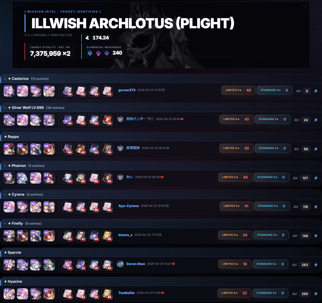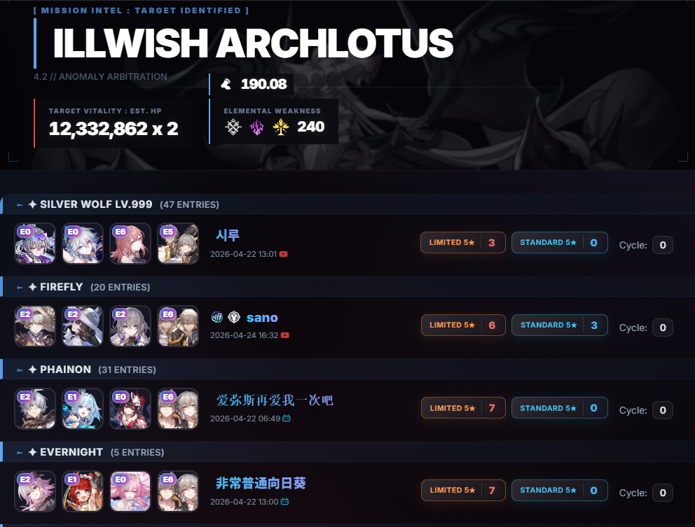>Current Character Banners: Silver Wolf LV.999, The Dahlia, Castorice, Firefly + Gallagher, Xueyi, Hook - https://www.hoyolab.com/article/44733121