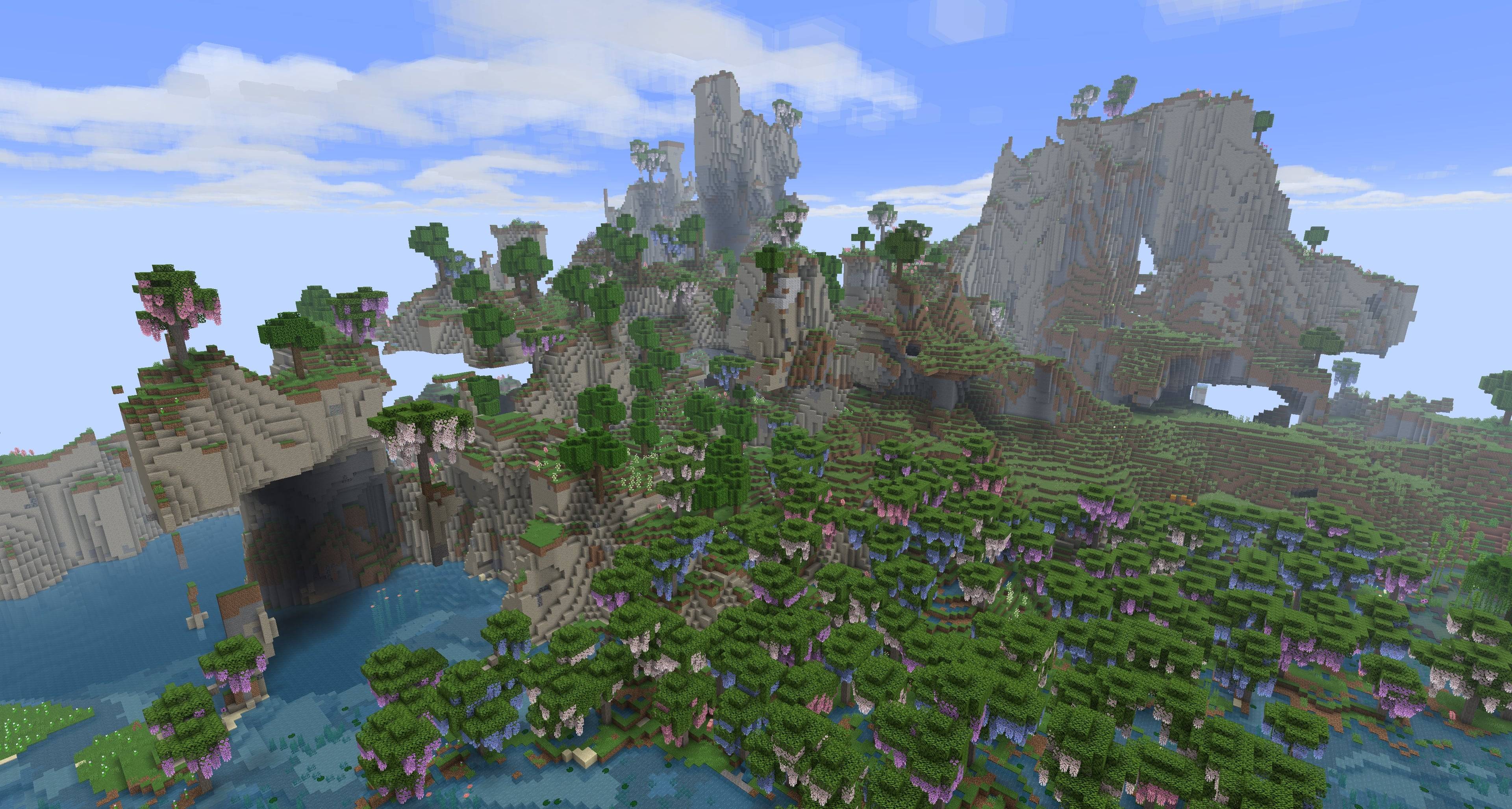 >>564713856I think I'll end up doing that. The extra continentalness of the floating islands isn't necessarily a bad thing, the terrain is still pretty challenging, and there are still wide swaths of ocean to traverse.>>564714246Now that you mention it, I was testing out Nature's Spirit. I really really like its cypress tree, but its cool white cliffs biome doesn't spawn anywhere but at Y=0 where it's not visible. Also yeah it has tranny flags in its villages. Looks pretty possible to change that with a datapack though.No Man's Land is nice for having less bloat, but its trees are kinda boring. It's also giving me strange stone structures stretching from the islands to the sea, seems like it's just not compatible with my sky island datapack. Well, they are kinda cool.
