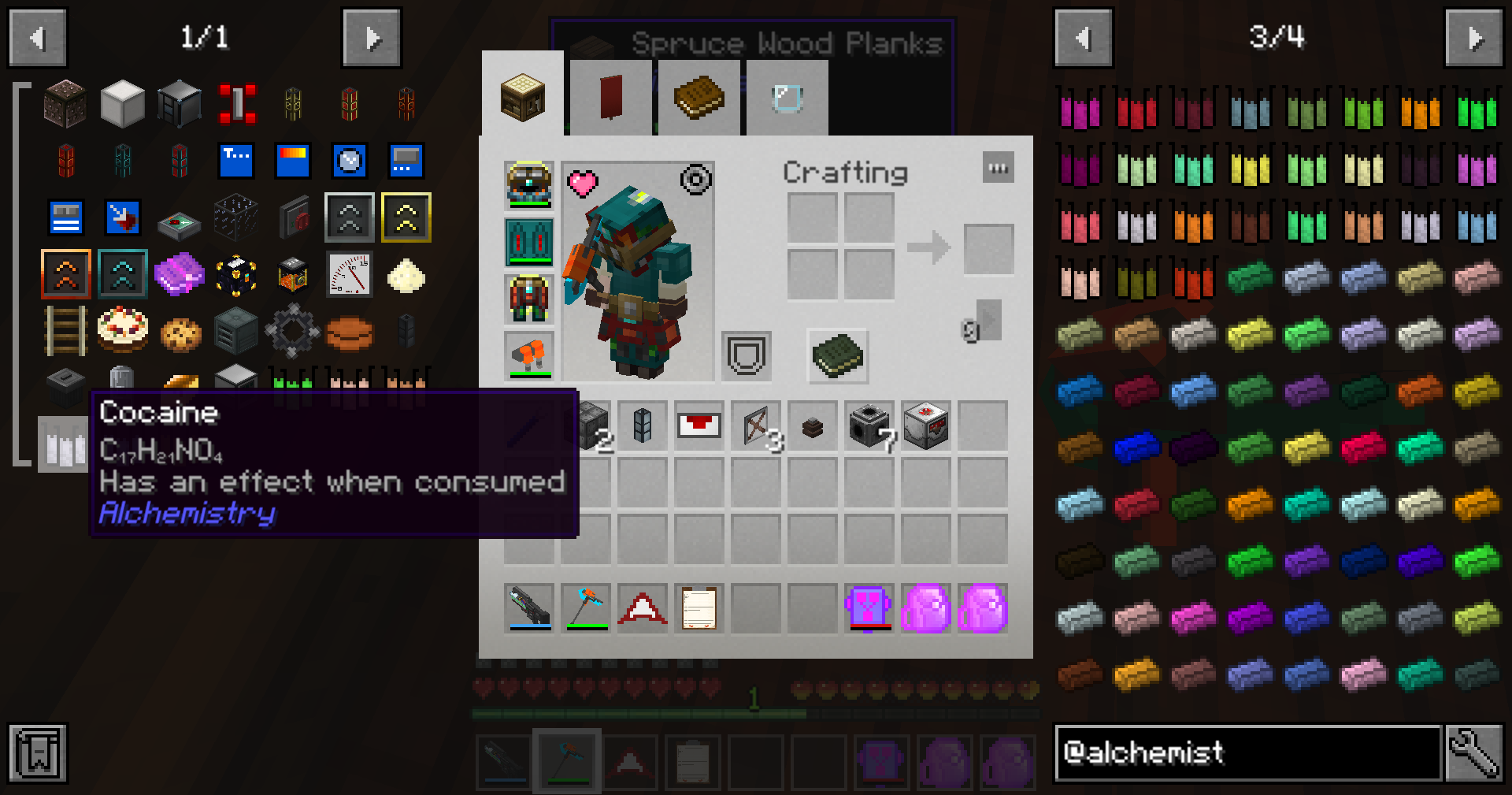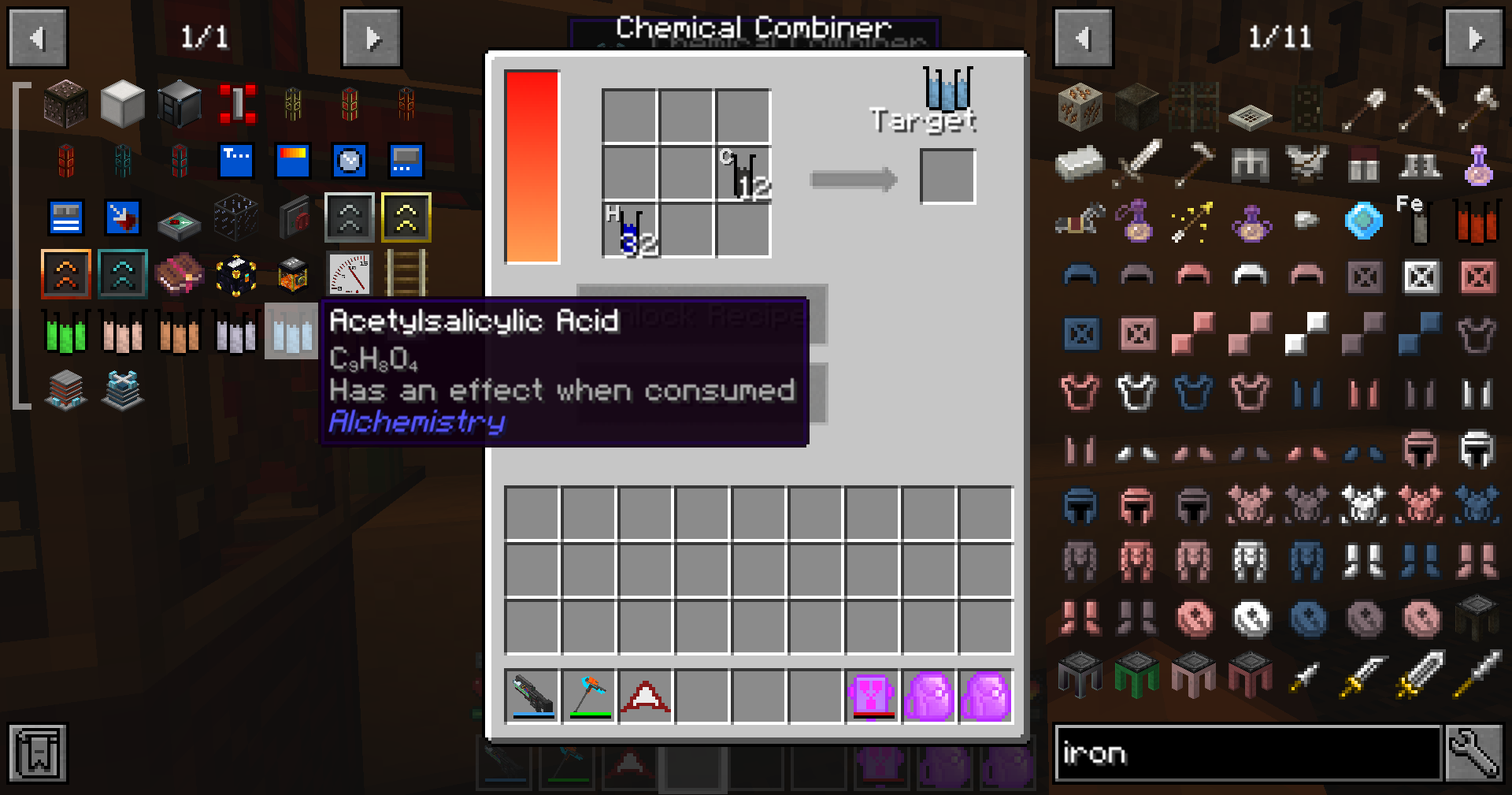 I was sad when I had to switch from minechem to alchemistry because I thought the latter didn't have medicinal consumables like aspirin. Turns out it does, it's just not called aspirin.Unlike minechem, the aspirin in alchemistry is actually consumable, and it functions like an instant health potion rather than a potion of regeneration, which is really cool imo.