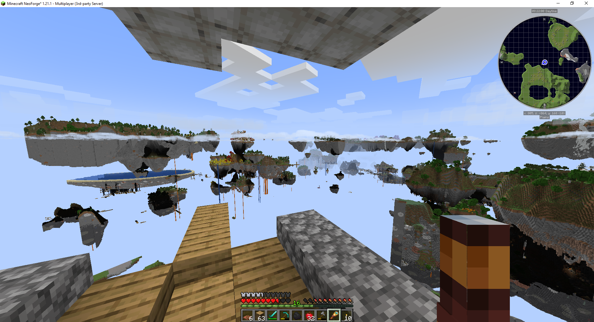 >>564715620>No Man's Land is nice for having less bloat, but its trees are kinda boring. It's also giving me strange stone structures stretching from the islands to the sea, seems like it's just not compatible with my sky island datapackwhat sky island datapack do you use?to me those stone pillars look epic. i dont mind them at all. just judging from this screenshot, idk how it is in-game.and btw the creator of no mans land is listed as a co-creator of aeronautics.