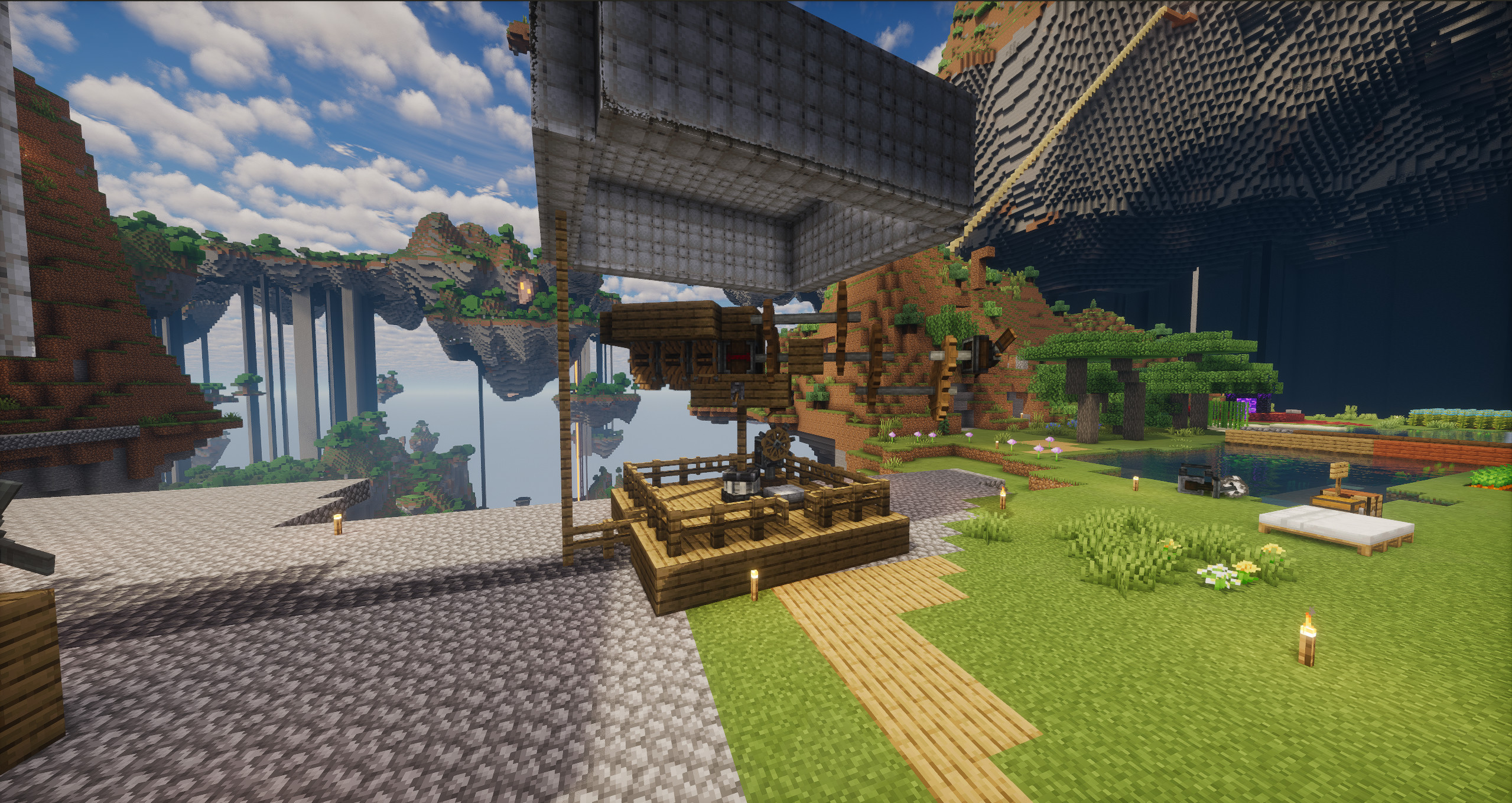 >>564712406No clue, not well I assume. There's a compat mod called "Oculus for Simple Clouds", but it only adds support for a single shader, and even then it looks buggy and the shader has bad performance. YMMV I guess. My assumption is that shaders won't work well for Aero in the first place. My recommendation is to put your GPU power towards a larger DH render distance instead, being able to see distant islands should be really damn cool. Not that I've even started testing with DH yet.>>564712889Doubling what the base game has might be sensible. But doing more than twice that again, and adding three flavours of vibrant clownvomit wood? I'll see if I can find something a bit less extreme.