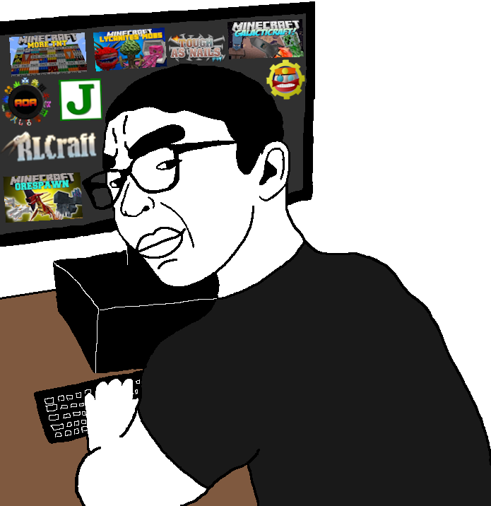 >>564754447>>564755150haha fuck you guys i'm a different anon doing this for a different group of people, i'm giving myself a week to design otherwise i'm just going to run a regular ass modpack (lel)
