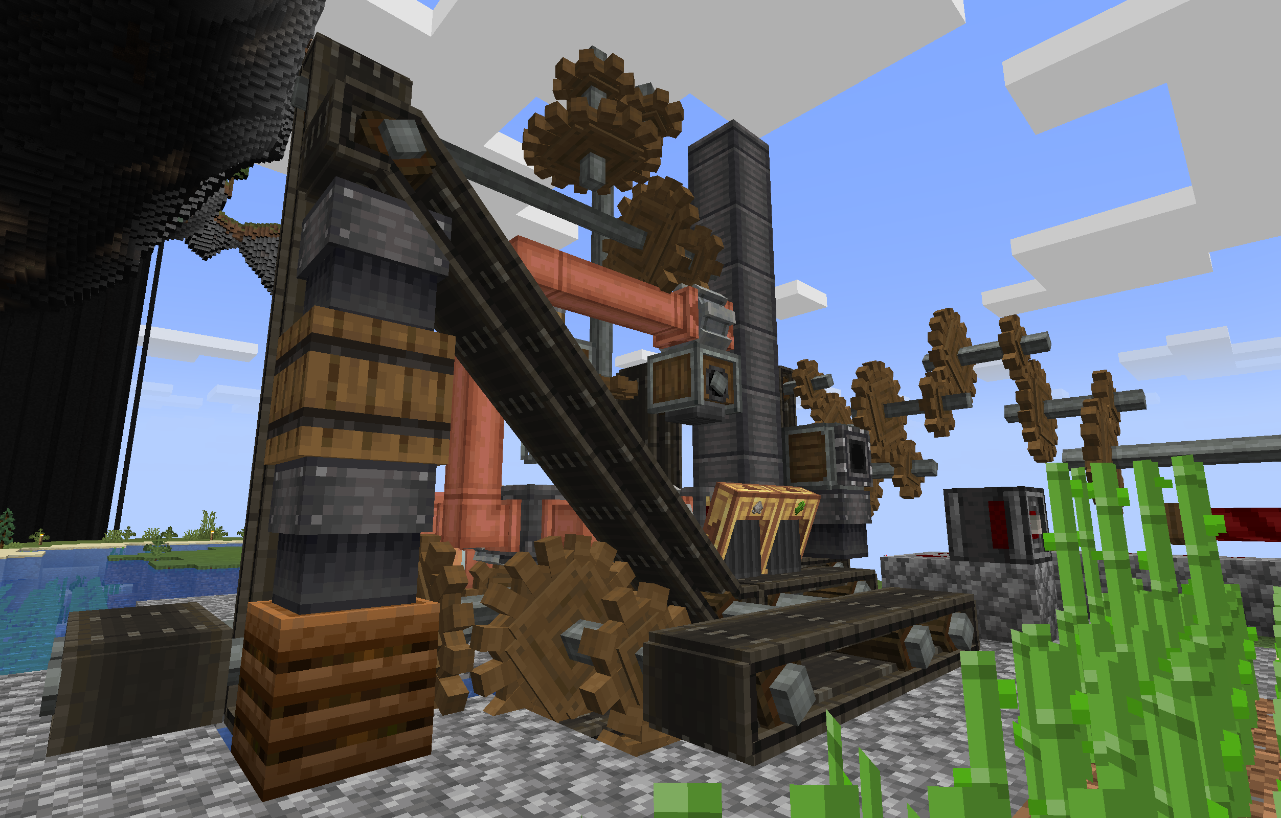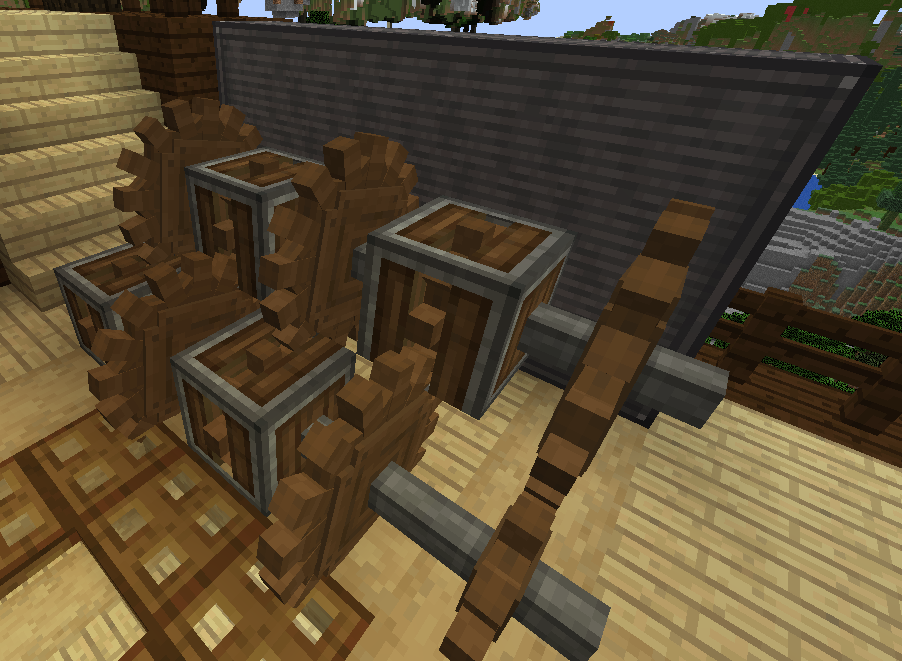 >>564943458Consider weighted ejectors to transport it from the brass funnels to the chutes. Throughput might suffer a tiny bit, but it still just works. You can also compact the gear set on the middle-right by covering the cogs with andesite casings (this doesn't consume the casings). Obviously it'll still be long, but it's a lot more uniform (and walkable in the event that you do it in compact spaces, IE if you're building underground). If they cog you apply them to are already connected to another cog, one side of its shaft will be covered while the other isn't, which lets you stack the cogs. They can also be wrenched to toggle whether or not that side is covered or not, if you need to do that.