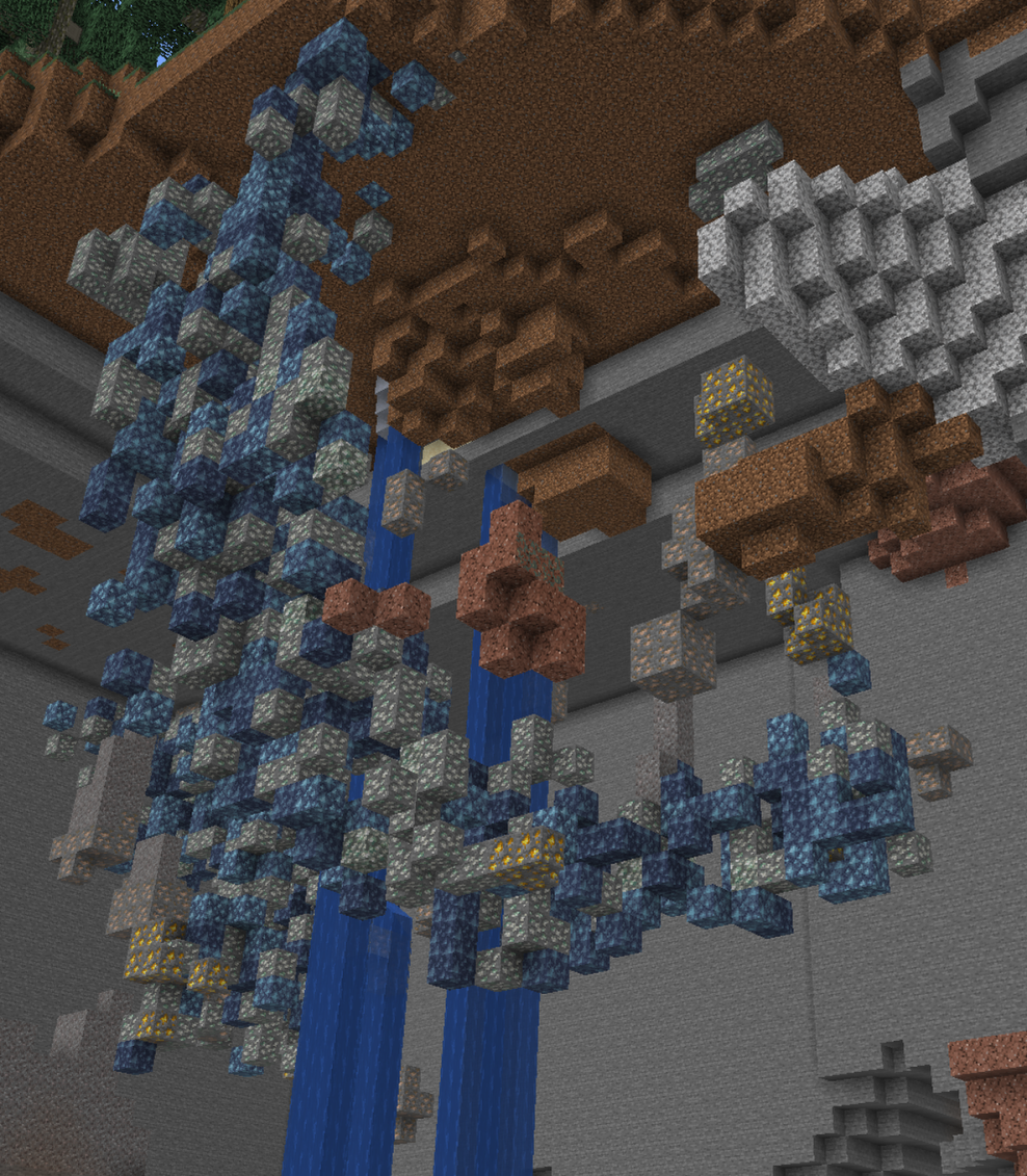 >>564947710Changing noise octaves for the vein_ridged function is what seems to work. Which is odd, I assumed changing the octaves would be the same as scaling the noise, but no scaling the vein_ridged noise just results in the blocks of each vein being spaced out further.I also assumed that changing the noise octaves for the vein_toggle function would be what defines the distance between veins, but that didn't do shit. Scaling that function also seemed to do bugger all, maybe it also spaced the ores out.>>564948061If anything, I'd want to make everything (rivers and land) more flat, with short semi-steep sections between altitudes. That way the rivers will be flat except for little waterfalls, and the terrain will be easier to navigate. Constantly having to jump up hills is a pain in the ass (without a stepup-like mod), and little plateaus/terraces are nicely aesthetic. But that kind of pseudo-quantisation seems like a pain to do unless you get right into the weeds of the algorithm.>>564950802I want them to be common enough that you can probably find one if you search a large island for ten minutes. Better to spend ten minutes looking for a vein when you need it each ~5 hours of gameplay or whatever, as opposed to spending 100 minutes looking for a vein that lasts 50 hours of play, or spending 1 minute looking for a vein that lasts you 6 minutes. There's normal ore generation too.Wonder if I should bother with prospecting picks?
