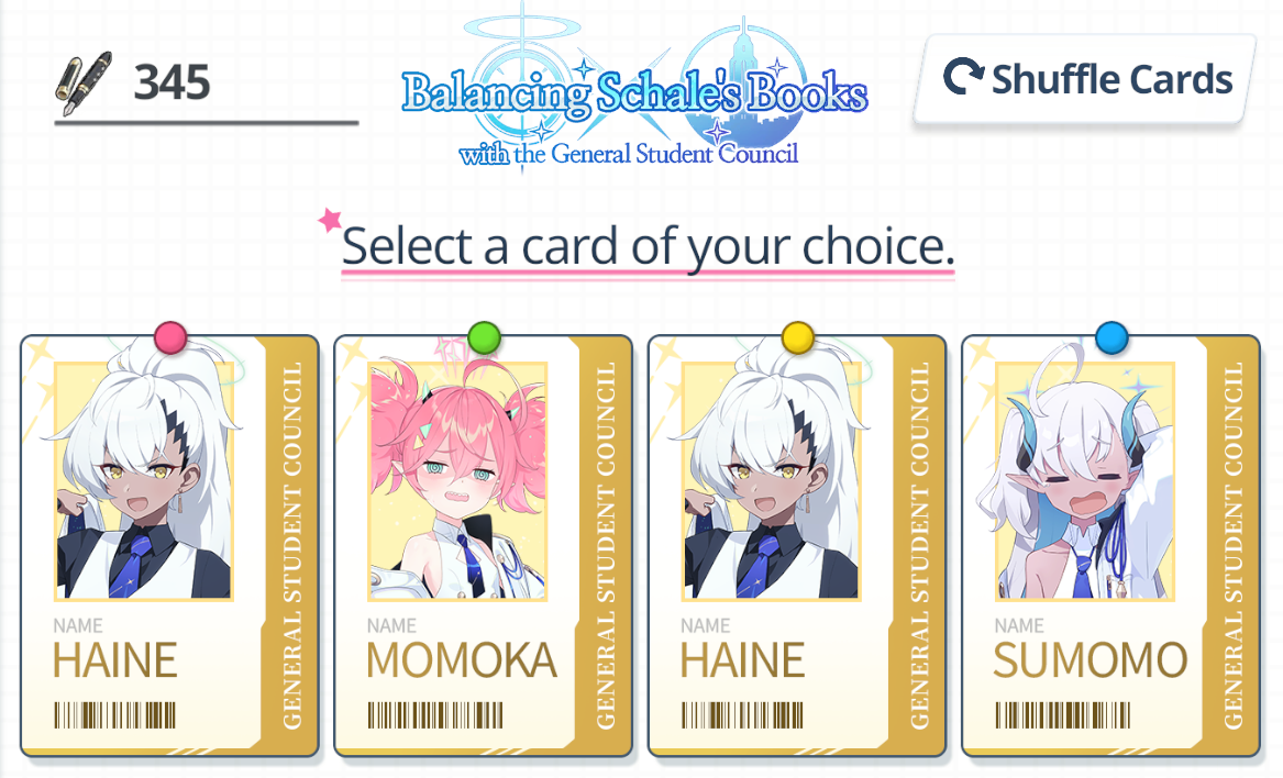 Previous Thread: >>564675543>Guides, Resources and useful links:https://rentry.org/bagguides>/bag/Circles/Clubs/Friends:https://rentry.org/holdingthebag>4koma, Manga, Side Content, PVs & Shortshttps://rentry.org/bacontent>>(JP) – JST>Banners:>4/21 After Maint – 5/6 10:59Niko (Limited)Kurumi (Limited)Otogi (Welfare)>News:Livestream Summary: https://rentry.org/4chanBagStream0419Patch notes: https://bluearchive.jp/news/newsJump/651>Events:Special Operation: Lore Pursuit – 4/21 After Maint – 5/6 10:59>Content:Total Assault: Kaiten (Urban) – 4/29 11:00 – 5/6 3:59Joint Firing Drill (Defense) – 5/6 11:00 – 5/13 3:59Limit Break Assault: Chokmah (Outdoor – w/Heavy Armor) – 4/22 11:00 – 5/27 3:592x Lesson/Scrimmage – 4/21 4:00 – 4/29 3:592x Account EXP – 4/25 4:00 – 4/27 3:592x Normal – 4/29 4:00 – 5/6 3:592x Account EXP – 5/2 4:00 – 5/7 3:592x Bounty – 5/6 4:00 – 5/13 3:592x Commissions – 5/13 4:00 – 5/20 3:592x Hard – 5/20 4:00 – 5/27 3:59>>(GLOBAL) – UTC>Banners:>4/21 After Maint – 4/28 1:59Mari (Pop Idol – Limited)Sakurako (Pop Idol – Limited)Mine (Pop Idol – Welfare)KahoKazusa>News:Patch notes: https://forum.nexon.com/bluearchive-en/board_view?thread=3425677>Events:Serenade Promenade – 4/21 After Maint – 4/28 1:59Balancing Schale's Books with the General Student Council – 4/21 After Maint – 4/28 1:59My Office: https://bluearchive.nexon.com/user/myoffice>Content:Grand Assault: Kaiten (Urban – Torment w/Heavy & Light Armor) – 4/21 2:00 – 4/27 18:59Limit Break Assault: Chokmah (Field – w/Heavy Armor) – 4/8 2:00 – 4/27 18:592x Lesson/Scrimmage – 4/20 19:00 – 4/27 18:592x Bounty – 4/27 19:00 – 5/4 18:592x Account EXP – 5/1 19:00 – 5/3 18:592x Normal/Lesson – 5/4 19:00 – 5/11 18:592x Account EXP – 5/8 19:00 – 5/10 18:59