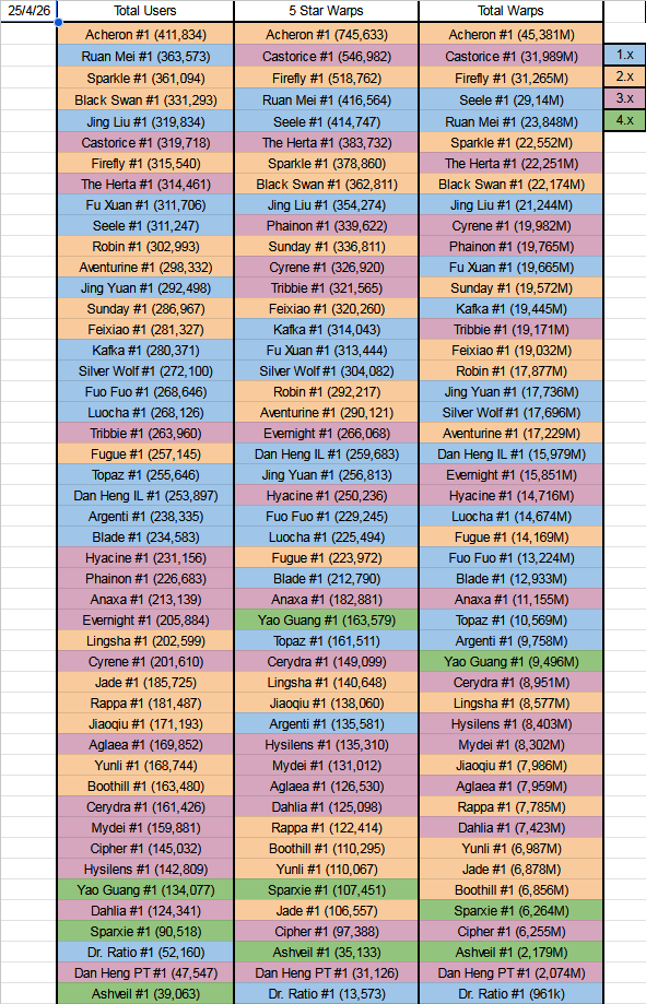 >Current Character Banners: Silver Wolf LV.999, The Dahlia, Castorice, Firefly + Gallagher, Xueyi, Hook - https://www.hoyolab.com/article/44733121