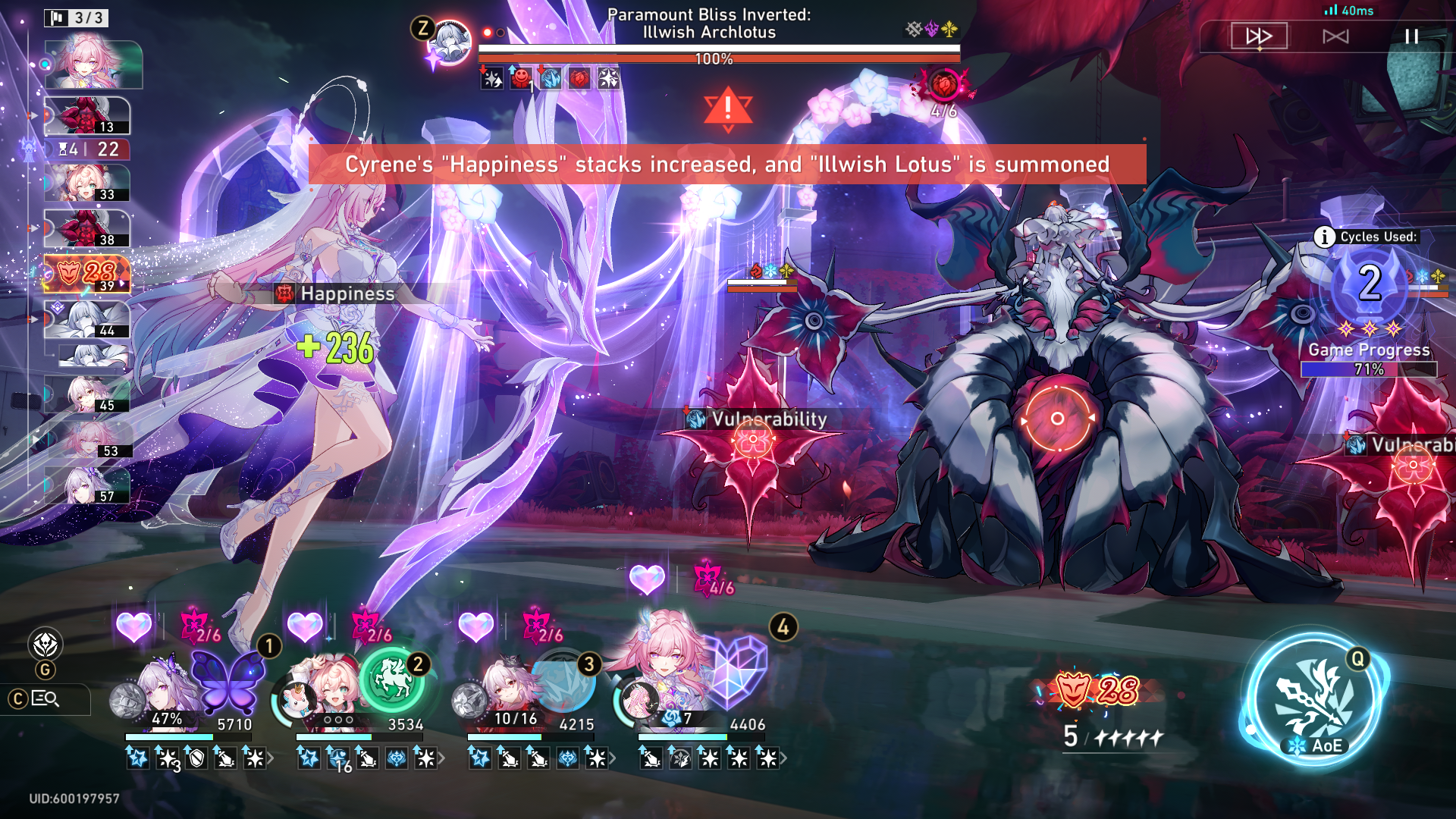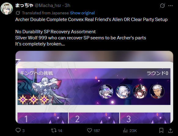Yeah she never loses her build up at E4? so she just constantly amps plus she speed scales Hyacine/Cyrene's investments are obscene