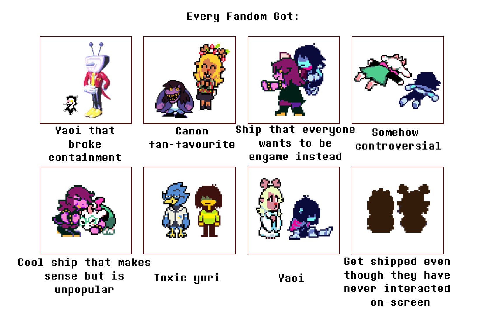 A horde of fuckin' ugly darkners editionPrevious 1.2 billion: >>564658315 Spoilers ahead, proceed at your own Frisk.-DELTARUNE CHAPTER 1-4>https://store.steampowered.com/app/1671210/DELTARUNE/>https://deltarune.com-The Old Game>https://undertale.com-The Old Game's Demo>https://undertale.com/demo-The New Game's Progress>https://toby.fangamer.com/newsletters/>https://deltarune.com/#news>https://web.archive.org/web/20240815033908/http://www.twitlonger.com/show/n_1sqn3p9-Merch>https://www.fangamer.com/collections/undertale>https://www.fangamer.com/collections/deltarune-Books>https://pastebin.com/1MRmU0Gk (Undertale Artbook)>https://pastebin.com/hLxHi0a0 (Legends of Localization - Undertale)-Extra Content>https://undertaleqa.tumblr.com>https://undertale.com/alarmclock>https://deltarune.com/sweepstakes/-Text Dumps & Screenshots>https://pastebin.com/WG9u1fvH-Fanart Archives>https://pastebin.com/g2JqH6Ba>https://utg.vidya.pics/-Recommendbin>https://pastebin.com/fsqd5Sa6-Writebins>Current: https://docs.google.com/document/d/1ZaYVvltQ_Rmf-ggszf1bwmYDW2NUcfpTYU7JzfyMhVE>Old: https://writebin.surge.sh-Comicbin>https://pastebin.com/UJpBYSEE-Fangamebin>https://archive.is/iSiFg-/vg/ League team>https://implyingrigged.info/wiki//utg/-Wanna change the font?>https://rentry.org/utg-font-/utg/ Canvases>Current: https://r9.whiteboardfox.com/96009034-3168-5257>Previous: https://r2.whiteboardfox.com/25646067-7713-5501>Current: https://magma.com/d/3B5chWd0Vh>Previous: https://magma.com/d/QiFH9rWyRh-Pippins Wiki>https://utg-pippins-ocs.neocities.org-Thread Template (paste the current whiteboard links)>https://pastebin.com/rTN8SxAw