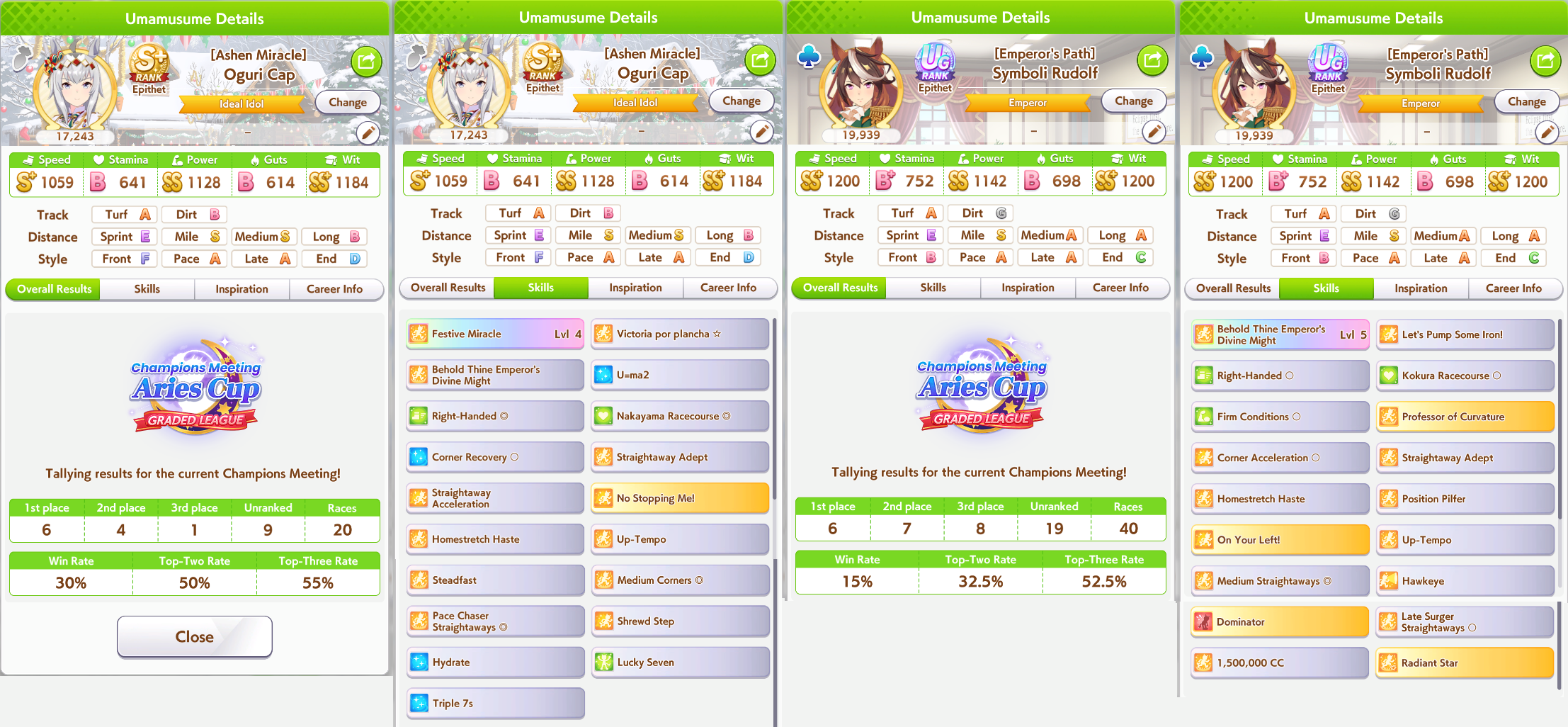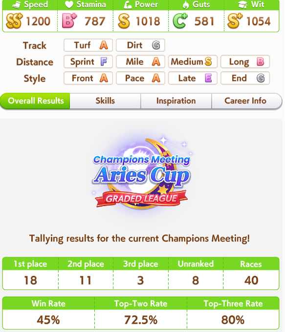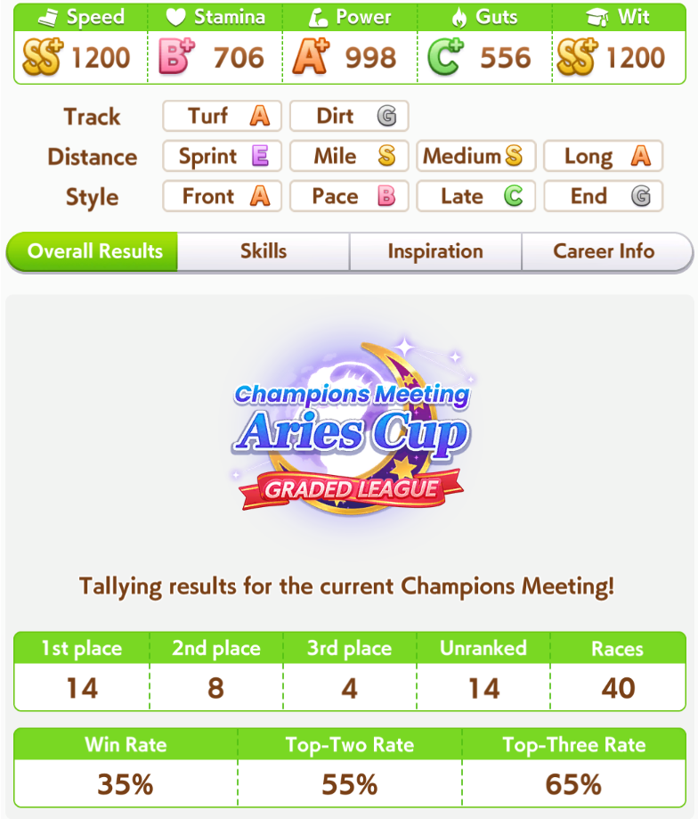 >>564751545i haven't done triple crown route for any cm build after pisces cup, kikka sho is too demandingdoesn't help that i've been training almost exclusively fronts