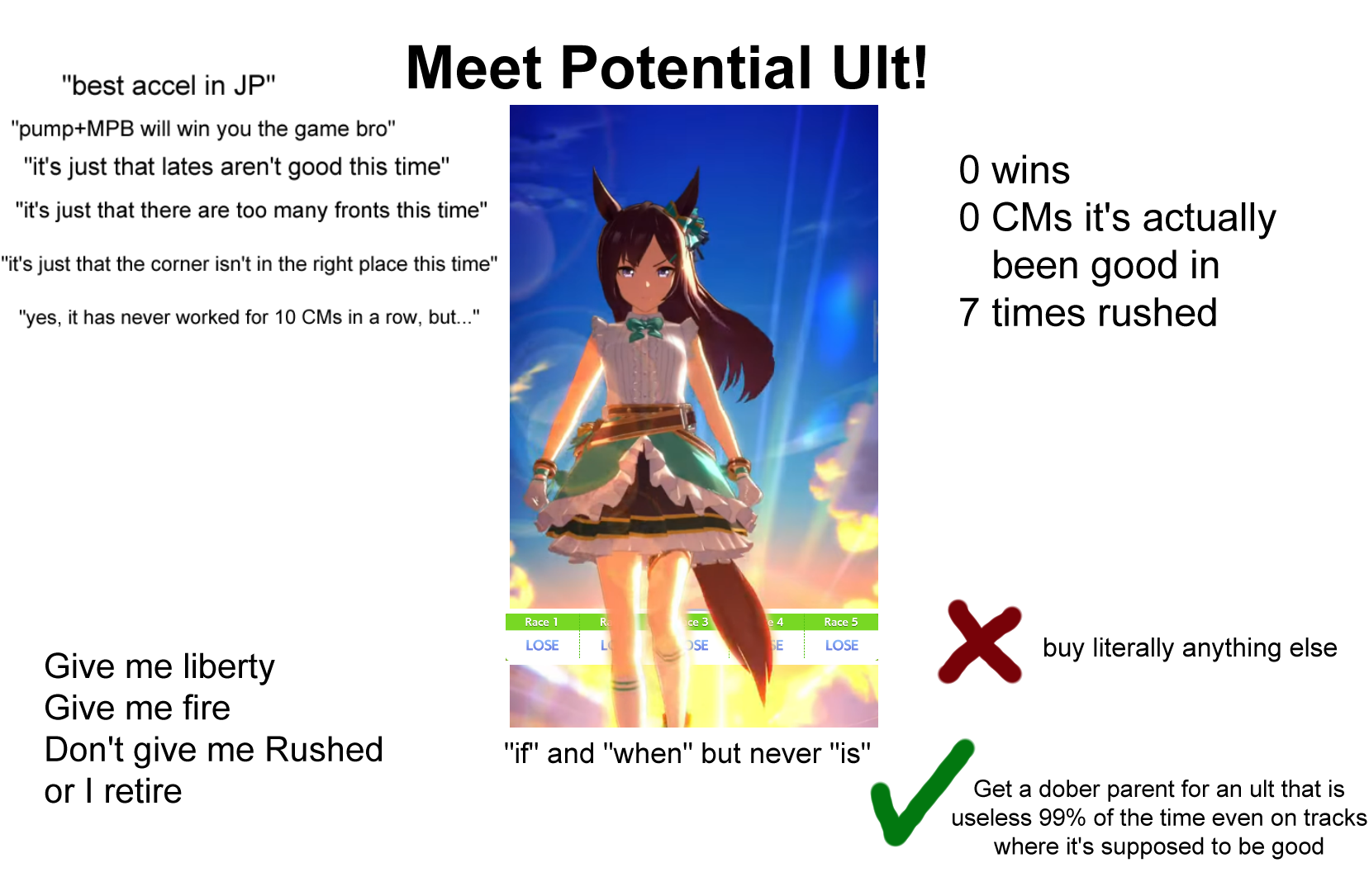 Only one good uma has been posted so far. Cygays should shut down global already, it was a failed experiment.