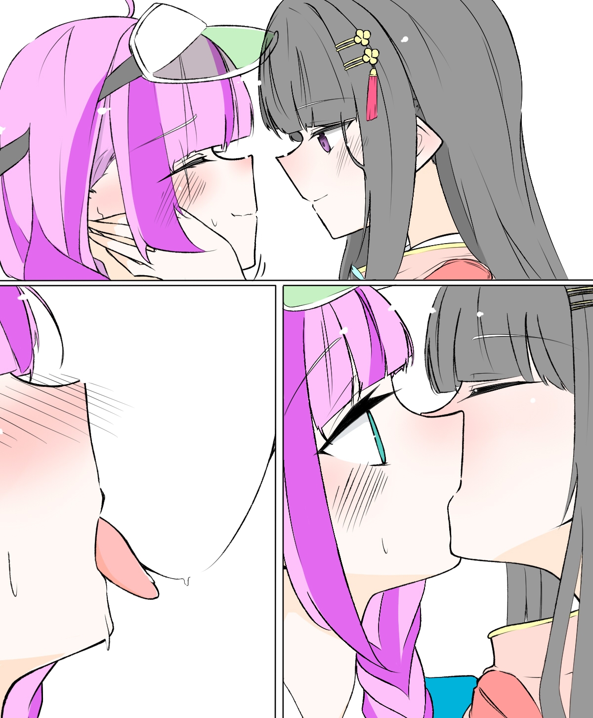 >>564957315she's aroused because her two faves are swapping spit. it's like when your favorite idol starts fingering your 2nd favorite idol mid-performance