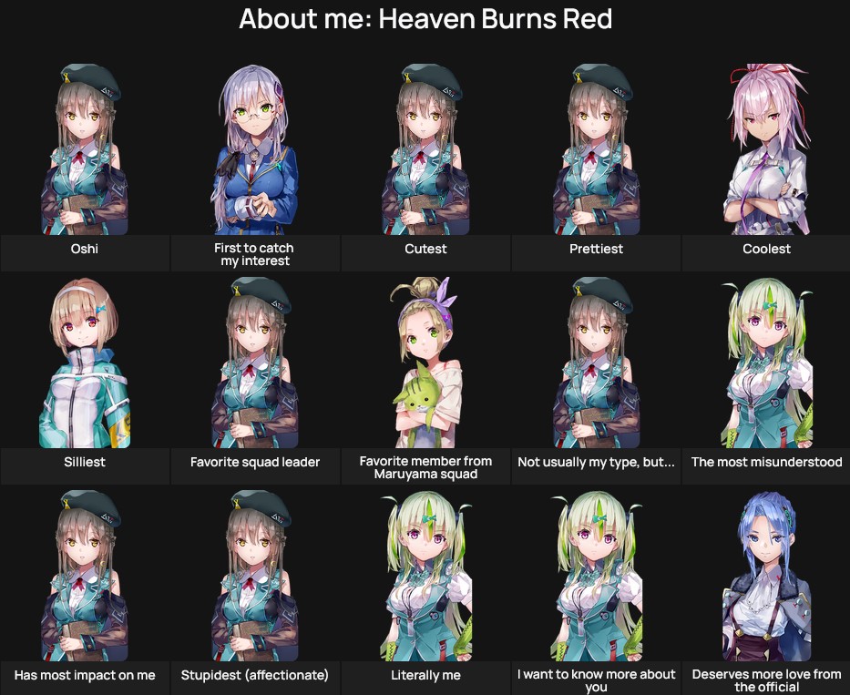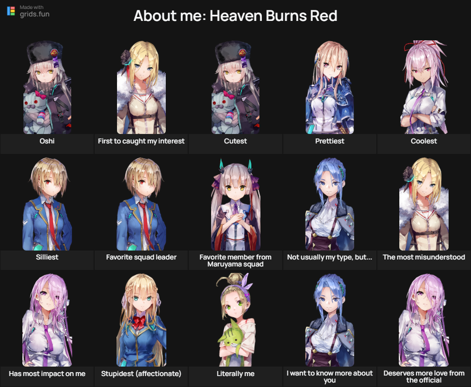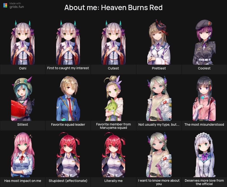 From the twisted mind of Jun Maeda who brought you Angel Beats!, Clannad, AIR, Kanon, Little Busters! and Charlotte.>Is it on PC?Yes, it's on PC and mobile.>Downloadhttps://heavenburnsred.yo-star.com/>Webstorehttps://payment.yo-star.com/product?id=cq6e2nhasp5195rnj96g>Twitterhttps://twitter.com/hbr_official_en/>Current bannersYuina SS4: https://x.com/hbr_official_en/status/2044098358751744451Wakki SS4 & Tsukasa SS5: https://x.com/hbr_official_en/status/2043358482179694713>Current eventsMain Story Chapter 5 Part 2 Act 2 - A White Spell and the End of the World: https://www.youtube.com/watch?v=_42WPAKbvbUEvent - A Warm Embrace for the Lamb of God: https://www.youtube.com/watch?v=wwk-yLp5rlg >Database/Tier listhttps://en.hbr.quest/https://docs.google.com/spreadsheets/d/e/2PACX-1vRE8-R_xoNaUGGUMa_tHbq4NgUVcO9DzPQ5g9jhPBdOTdTjxsdW5yT3JteKfoS2xxzoyqItREEXSycW/pubhtmlhttps://game8-jp.translate.goog/heavenburnsred/425643?_x_tr_sl=auto&_x_tr_tl=en&_x_tr_hl=en>Game resources (warning, jp spoilers)https://mega.nz/folder/rJ0ARLTK#CHNMWomnFr9kbBa5kb-dxw>Character roster sharinghttps://ruri-ro.github.io/hbr/StyleChart/https://www.hbr.style/en?v=boxCaution, newfriends! Do not read the spoilers.tags: yuri, harem, drama, comedy, JRPGPrevious: >>564169490