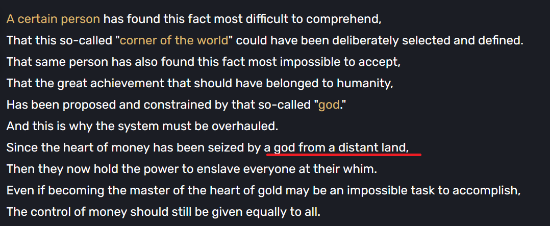 >>564748440They're retarded then. Pantalone is deeply frustrated with poverty and gods in general. So in Pantalone's mind, he needs to change Mora for a human made currency to remove divine influence. It has nothing to do with having a special hatred for Zhongli/China, he hates the divine as a whole. Keqing wanted humans to rule Liyue and remove Morax's influence, but she never cared about the existence of Mora like Pantalone does for example because she wasn't a poorfag