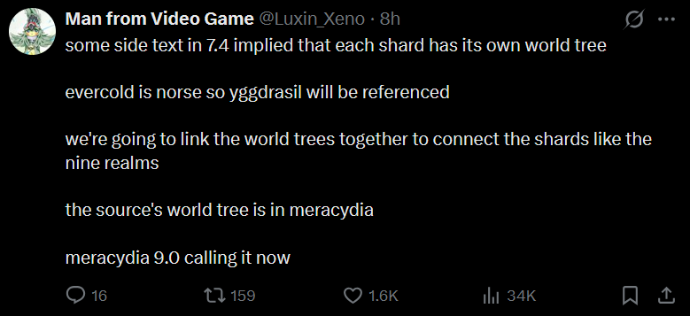 >>564732758>So are we actually going to rejoin shards now?We're setting it in motion basically, the way we're going to do it is really slow. Essentially ascians were crashing the shards into each other and it only worked if they both crashed into each other.We're going to rejoin them slowly by balancing all of them out. So basically we'll set it in motion but never see it actually happen without time travel shenanigans which is probably going to be what's happening in the next expac..