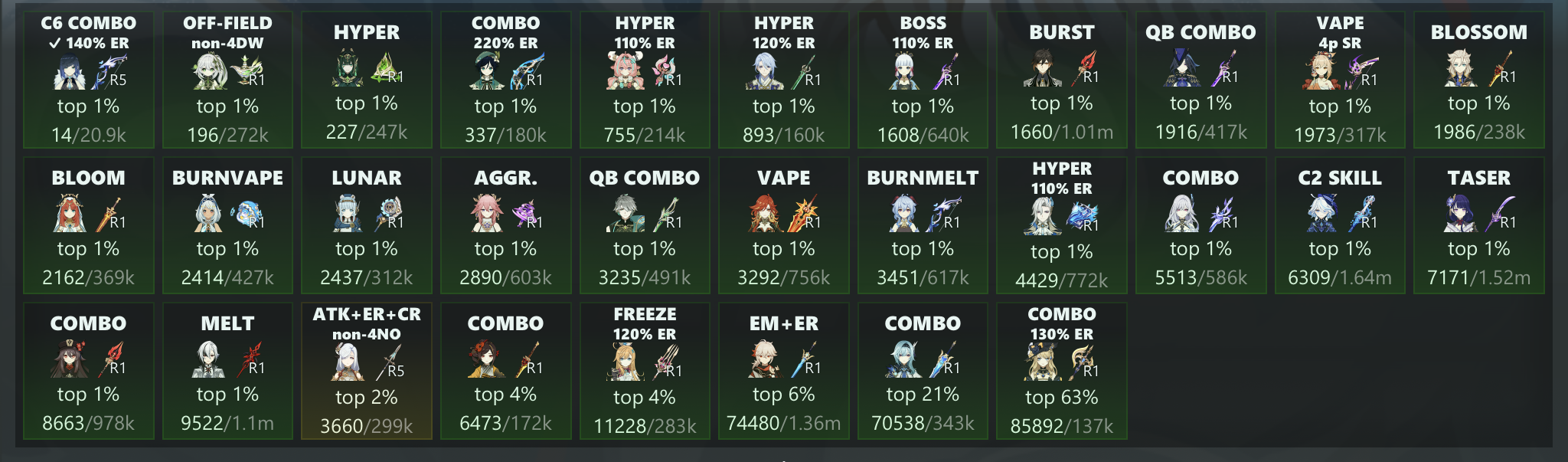 Post your top 5 characters on Akasha.