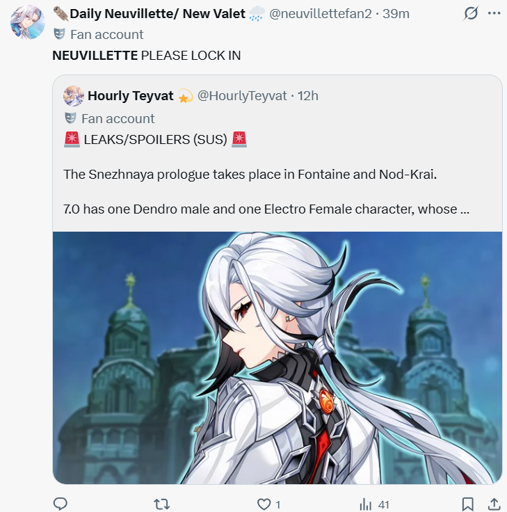 It just dawned on me that Varka won't be in the next patch when we deal with Dottore for good which means he genuinely just showed up for the first time after 6 years, jobbed offscreen, and then proceeded to literally do nothing for the rest of the region