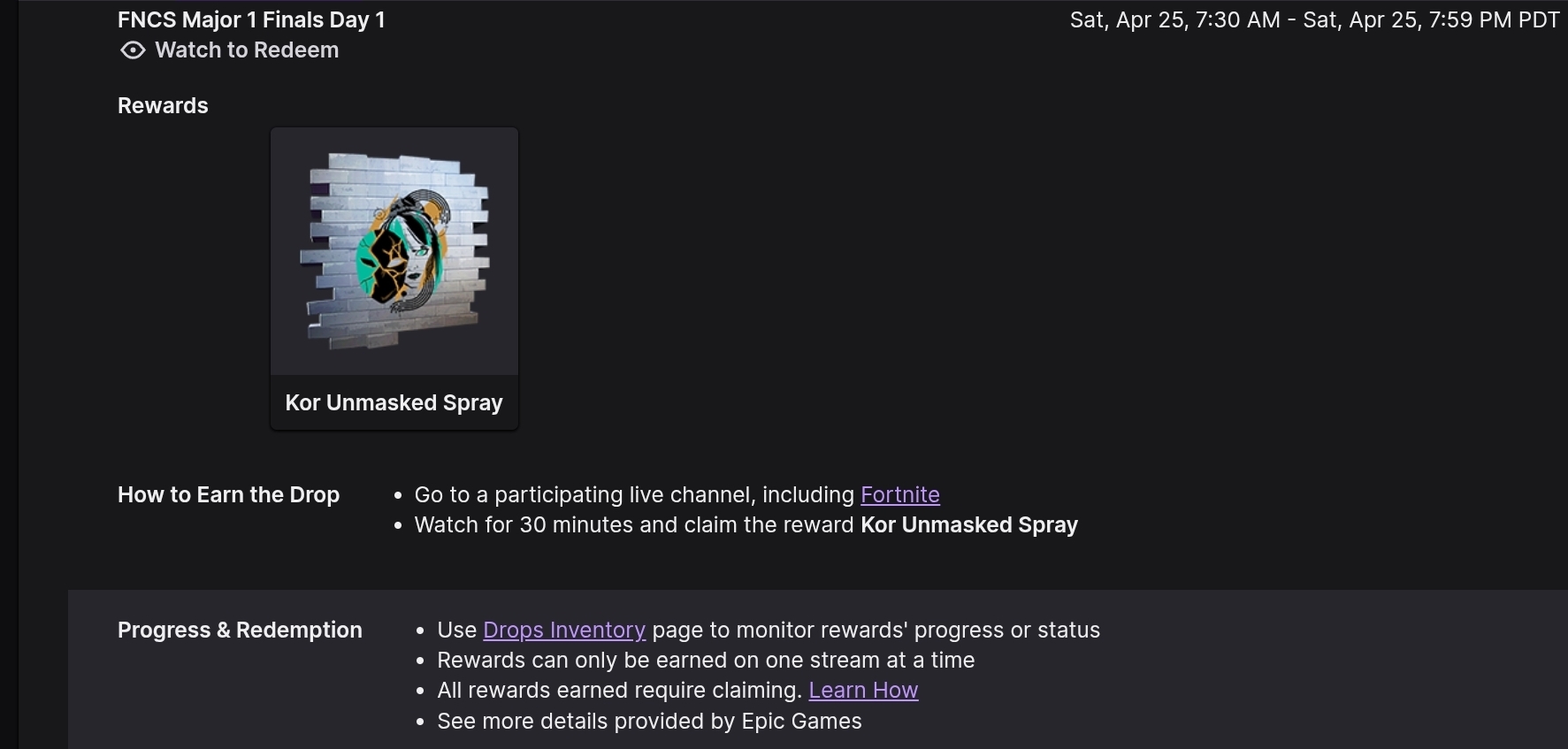 Don't think anyone posted this earlier but a new twitch spray is available.Fortnite are streaming now:https://www.twitch.tv/fortnite