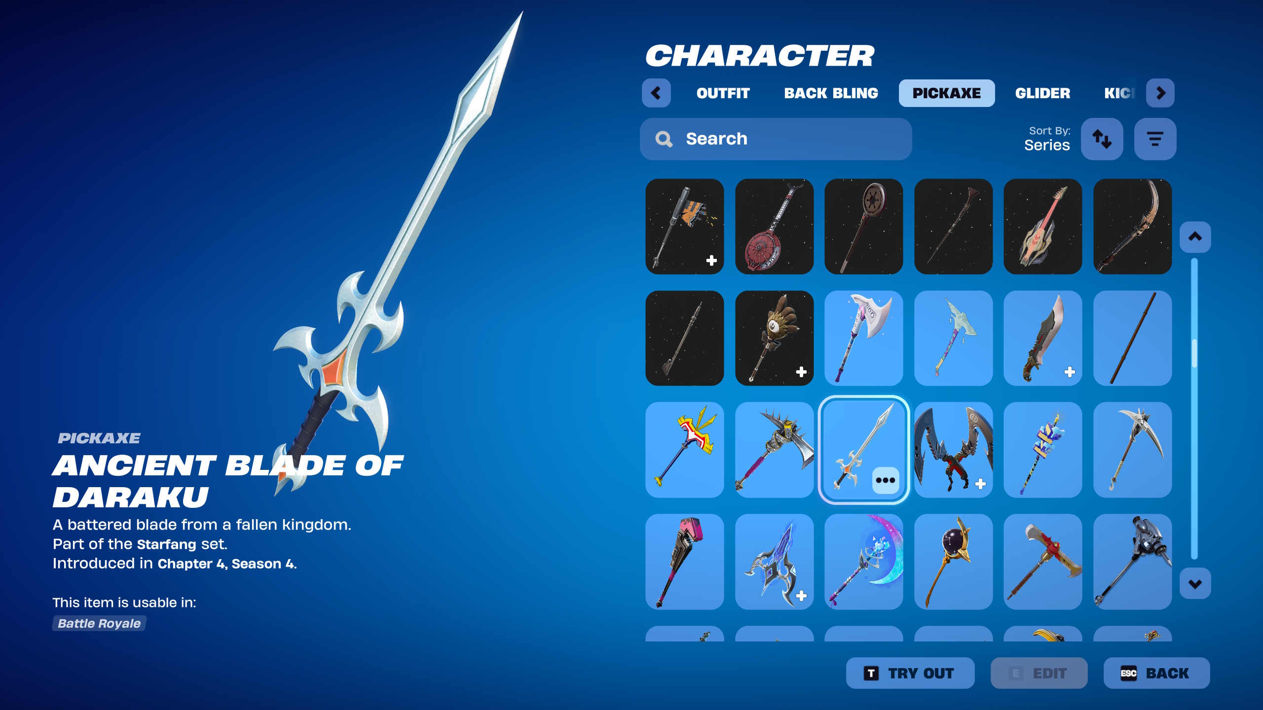 >Countess Daraku is in the shopbut not her sword because battle ready tab always just has random pickaxes and skins don't match each other, I wish they just made bundles for skins that don't have them and THEN send them in the shop because I'm not waiting years/months for a skin's backbling and pickaxe because it appeared in a no sweat/battle ready tab without a bundle