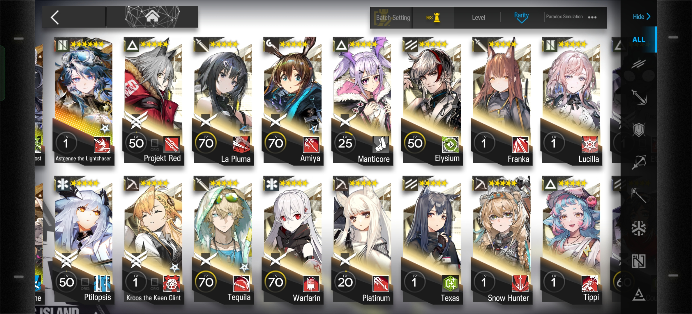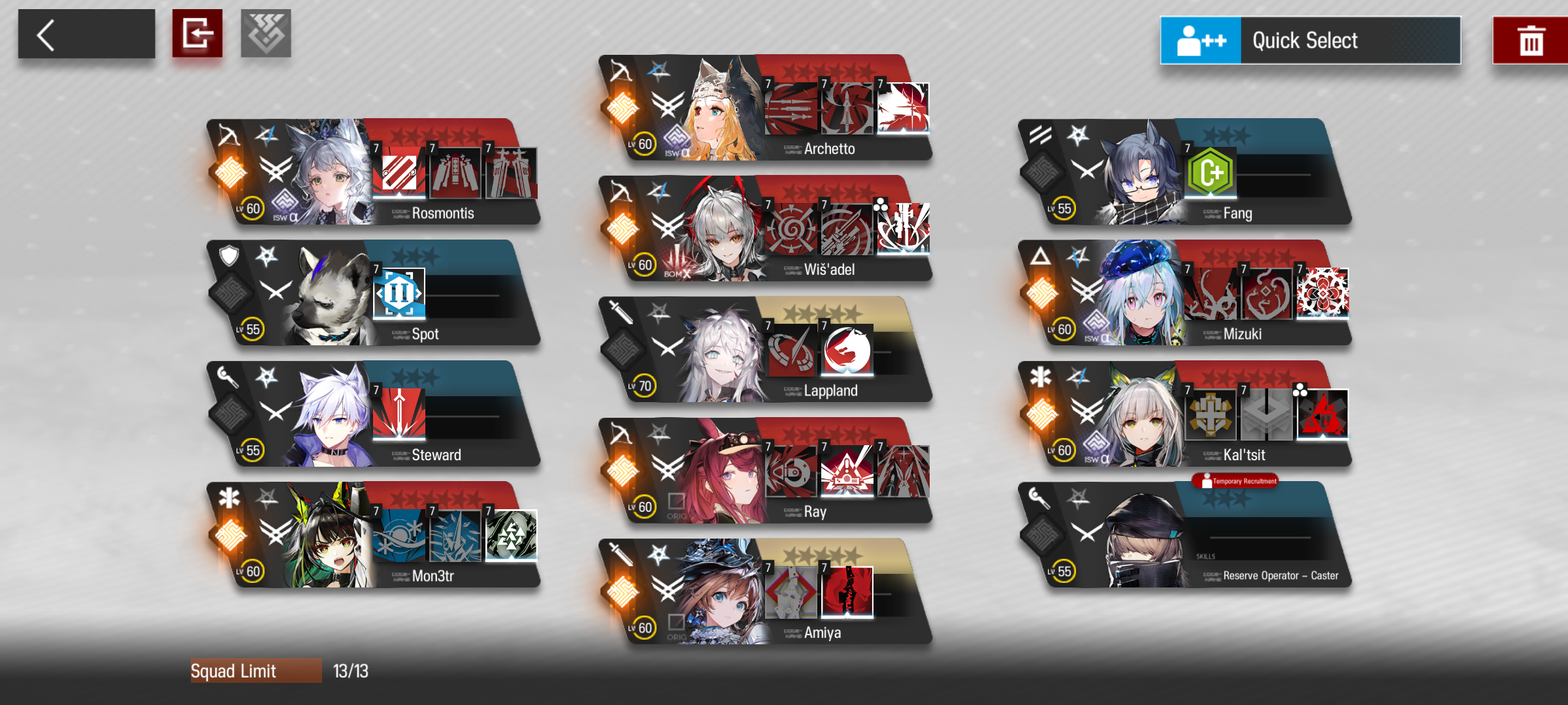 >>564770737It's gigantic. Not counting the ones that are just building modules for characters that got them when I wasn't playing the game, here's the rest. Some are for base skills, a couple are for characters I E2'd primarily for their base skills but want to finish building, and a lot are just characters I need/want to finish. Also not depicted is TexAlter who I won't get til I finish my spark on Monday.