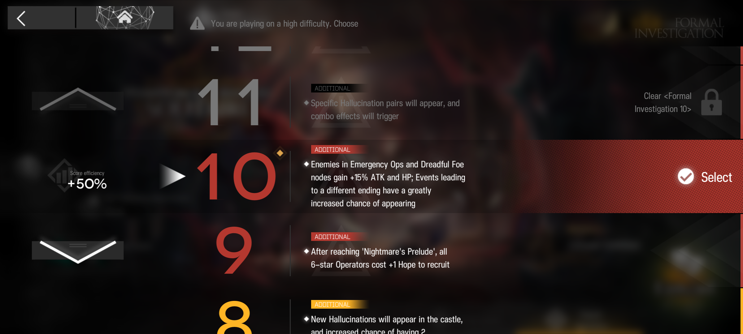 How high does this go? And do the difficulty modifiers stack? Like if I'm doing Difficulty 10, will I still get the thing that makes 6* ops cost an extra Hope from Diff 9?