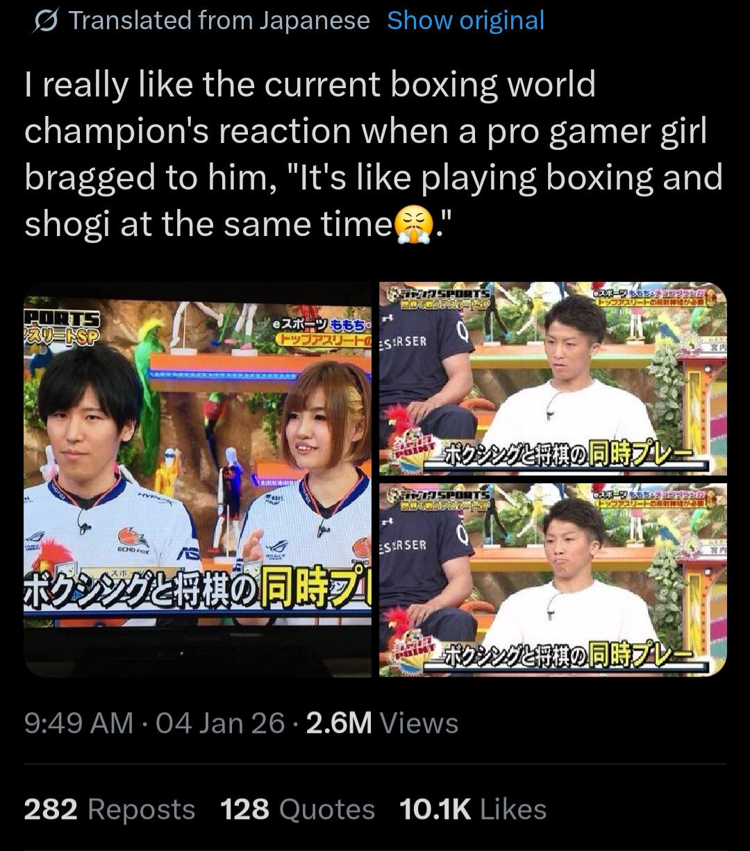 >>564790057This boxer was the wrong guy for this, there a pro athletes in Japan who actual play fighting games.
