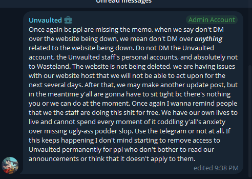 Can anyone pull nyaughty's secretary from the unvaulted telegram please?